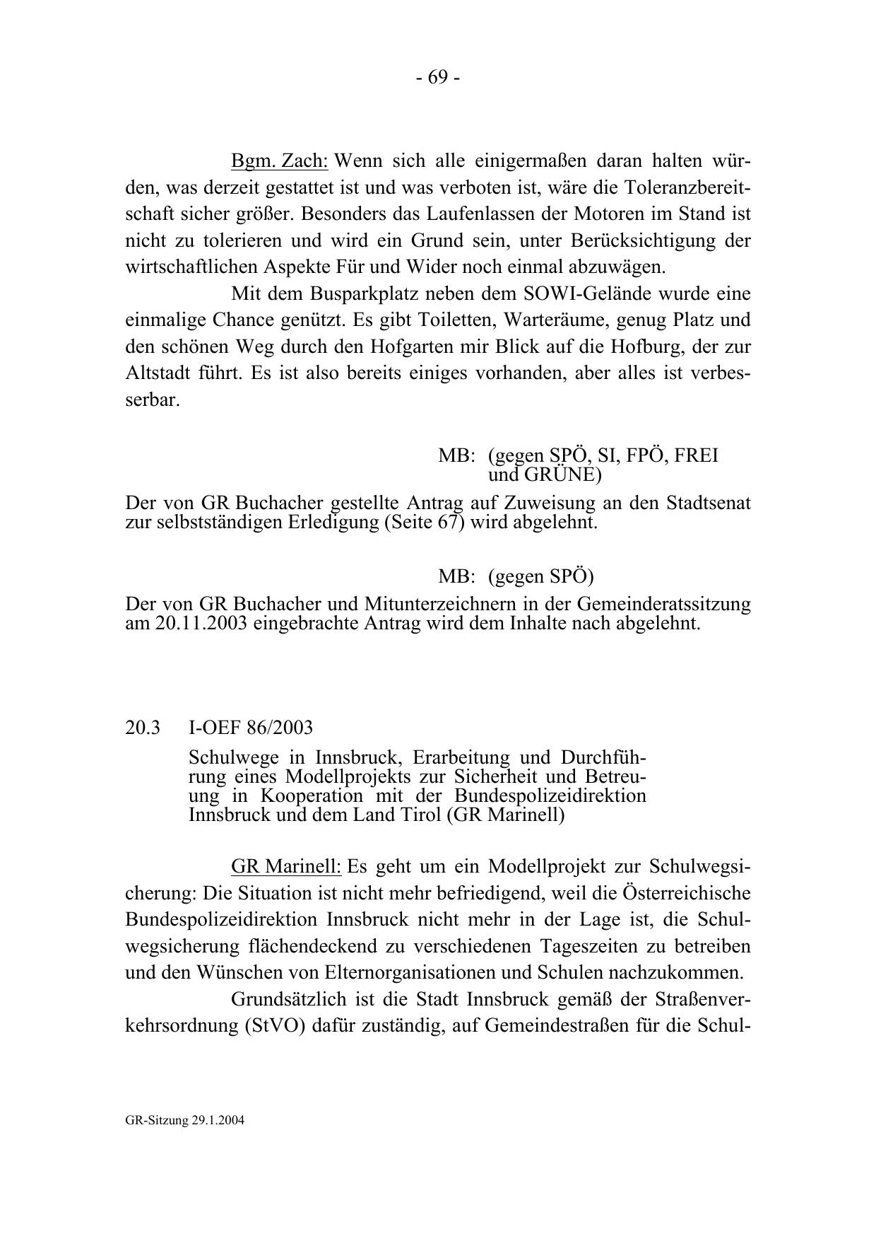 zur selbstständigen Erledigung (Seite 67) wird abgelehnt.