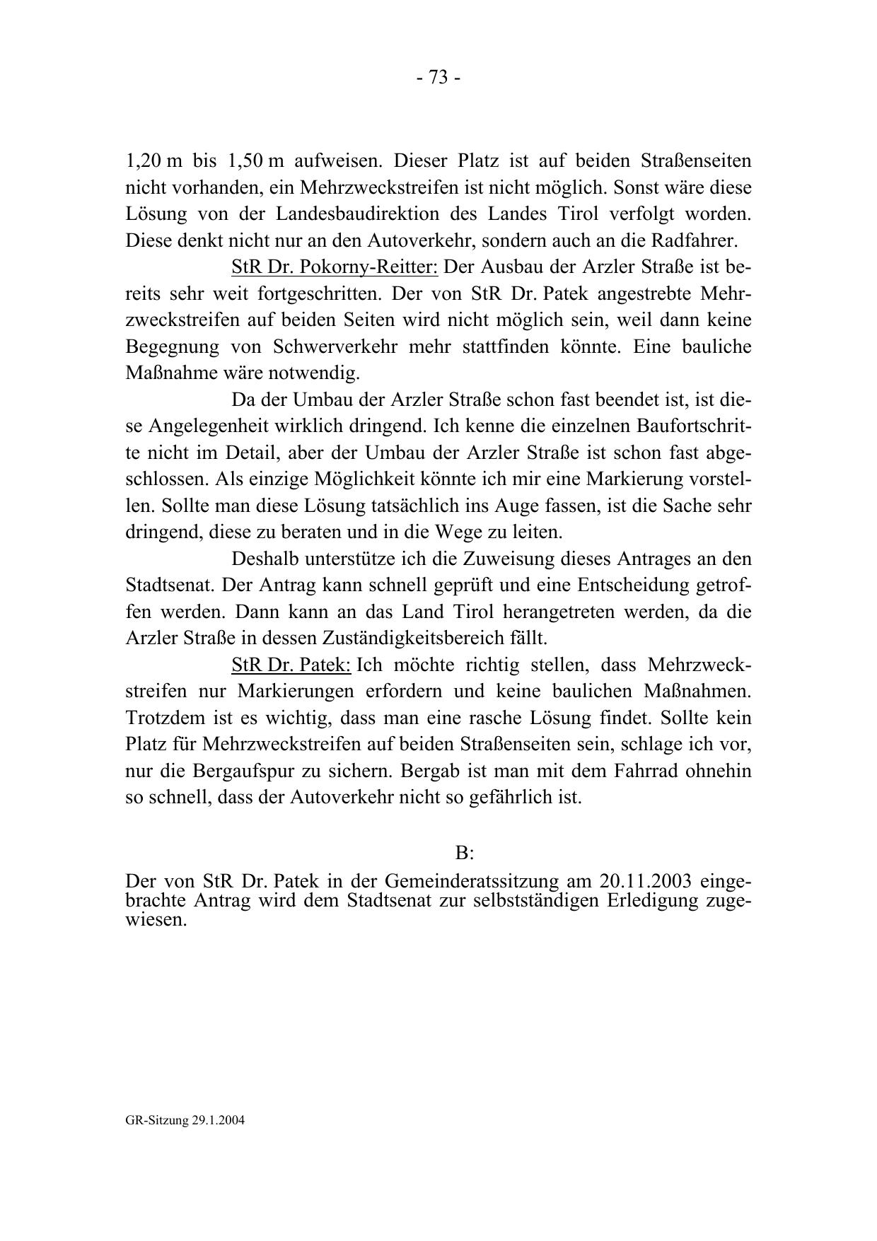 StR Dr. Pokorny-Reitter: Der Ausbau der Arzler Straße ist bereits sehr weit fortgeschritten. Der von StR Dr. Patek angestrebte Mehrzweckstreifen auf beiden Seiten wird nicht möglich sein, weil dann keine