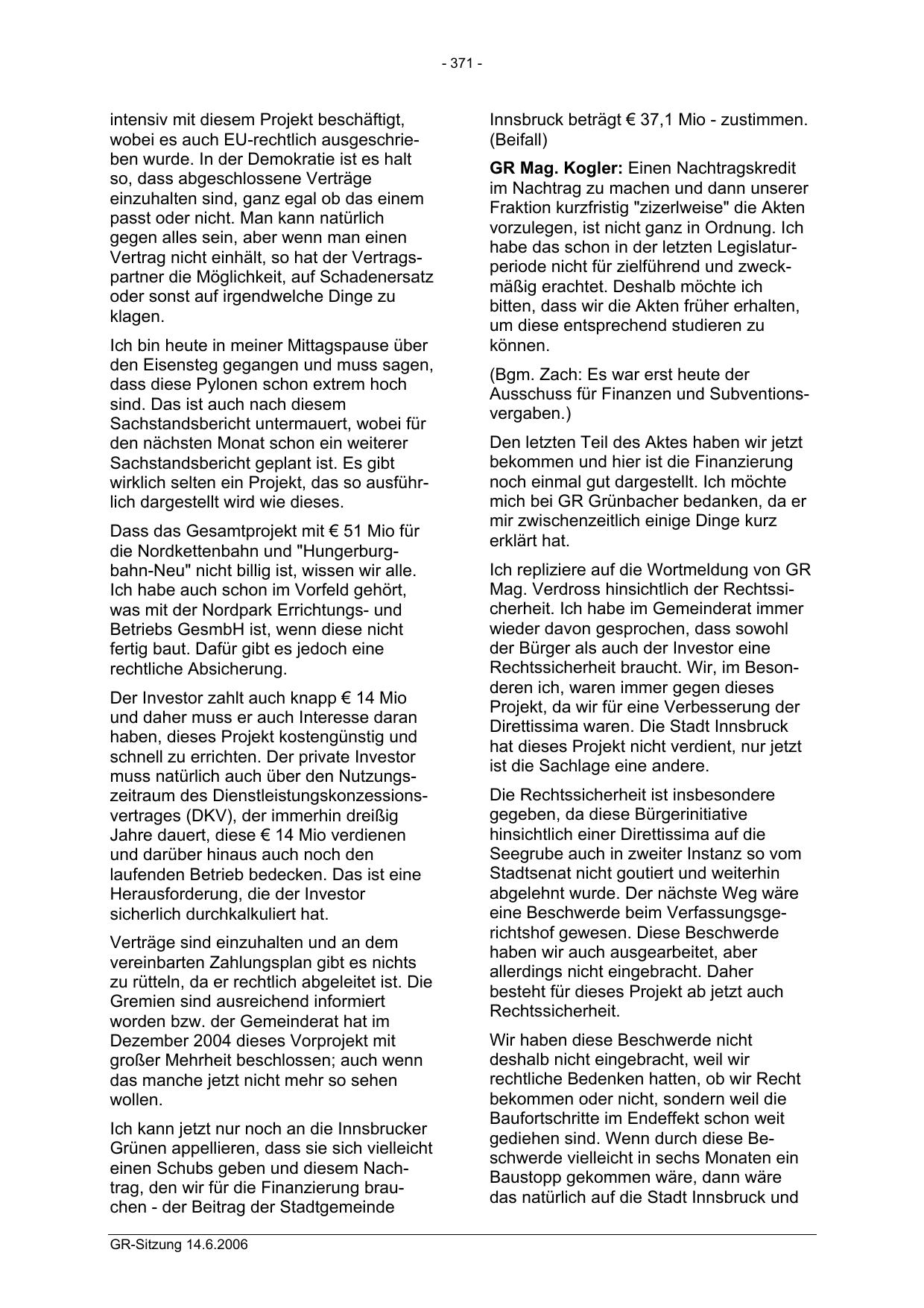 Innsbruck beträgt € 37,1 Mio - zustimmen.