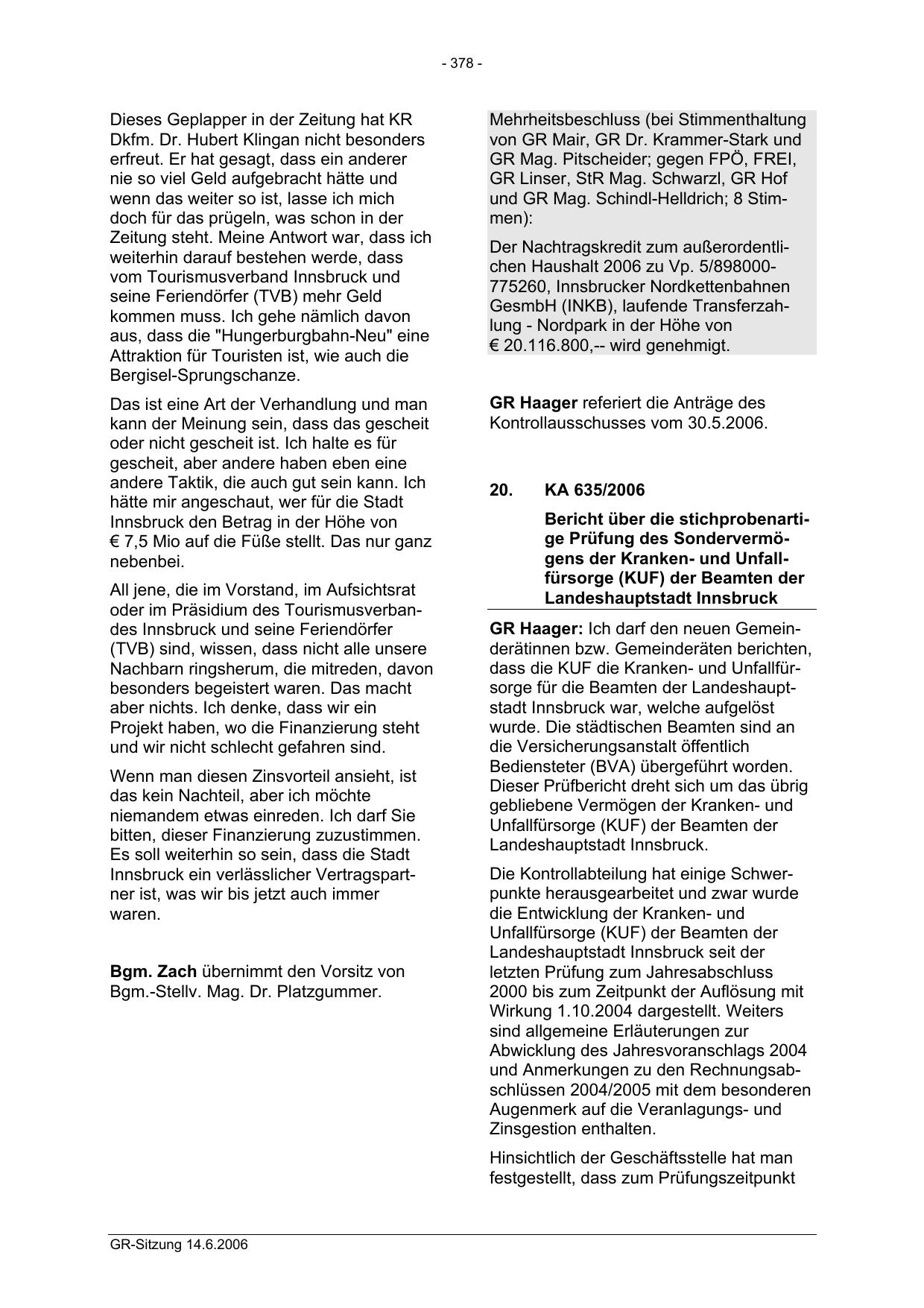 GR Haager: Ich darf den neuen Gemeinderätinnen bzw. Gemeinderäten berichten,
