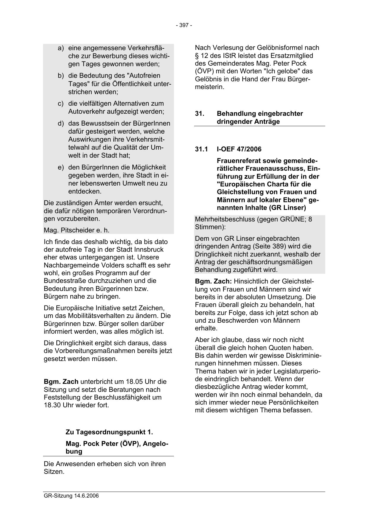 Bgm. Zach unterbricht um 18.05 Uhr die