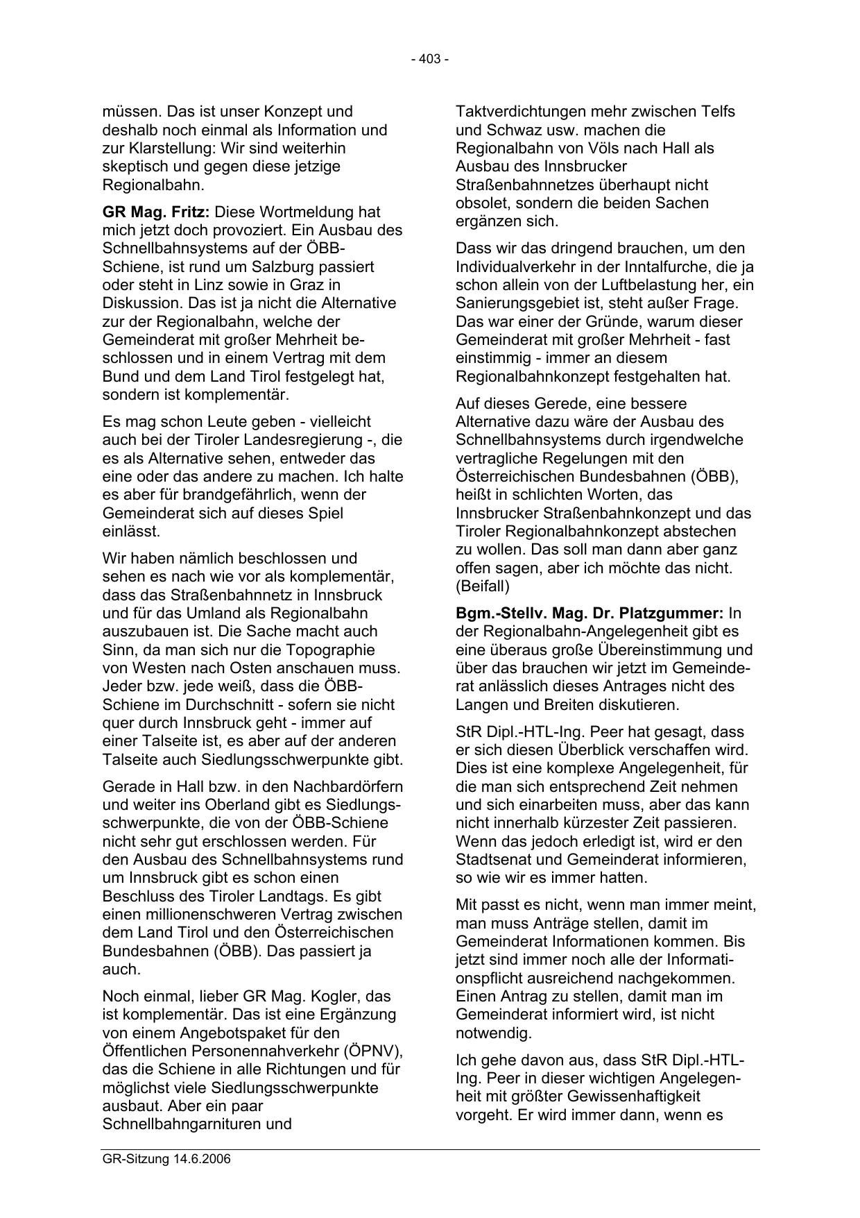 Bgm.-Stellv. Mag. Dr. Platzgummer: In