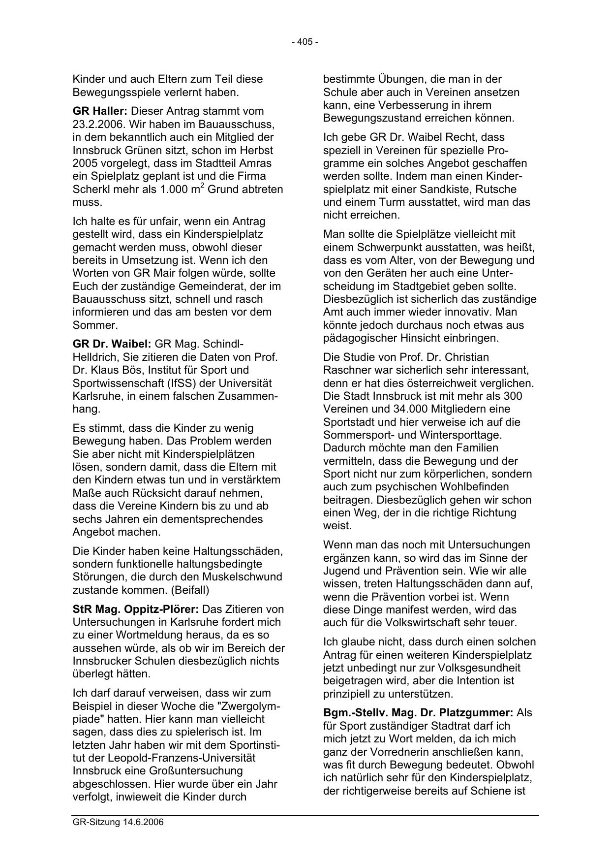 Bgm.-Stellv. Mag. Dr. Platzgummer: Als