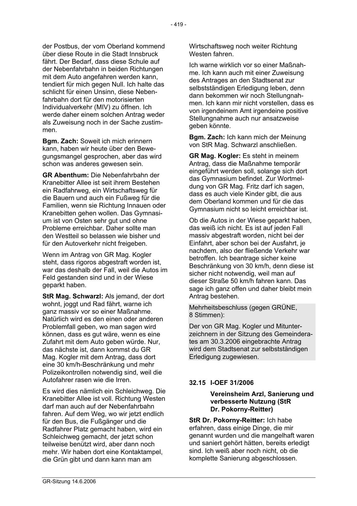 Der von GR Mag. Kogler und Mitunterzeichnern in der Sitzung des Gemeinderates am 30.3.2006 eingebrachte Antrag