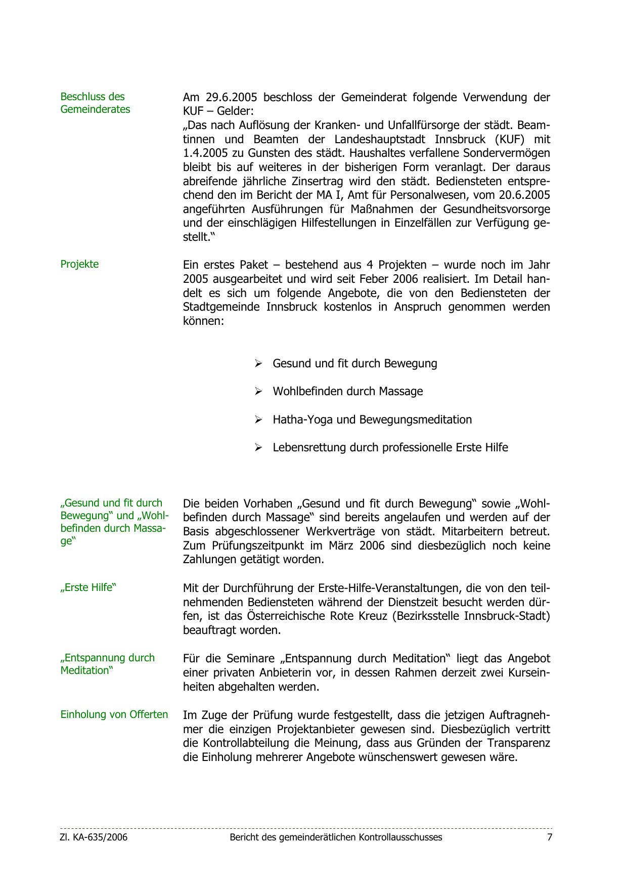 „Das nach Auflösung der Kranken- und Unfallfürsorge der städt. Beamtinnen und Beamten der Landeshauptstadt Innsbruck (KUF) mit