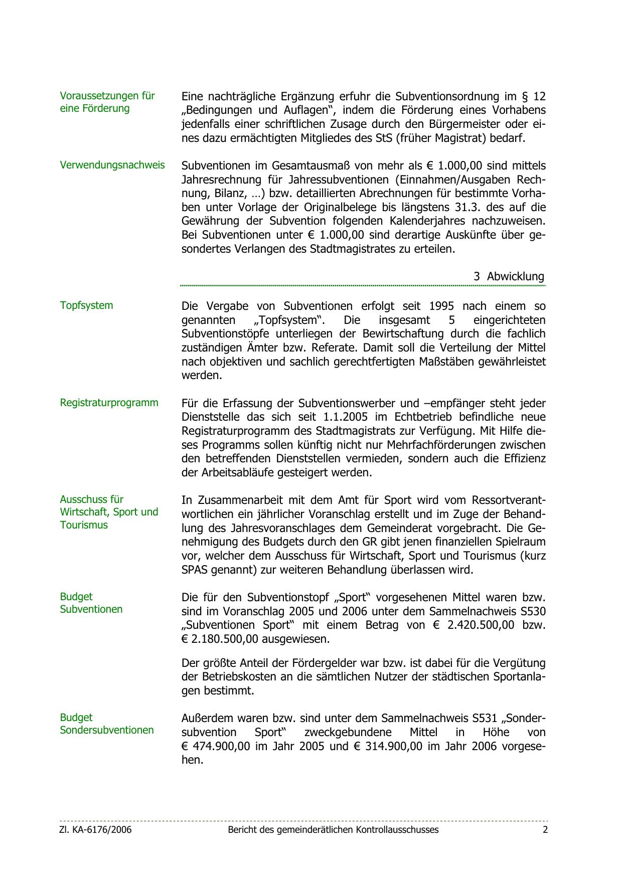 Bei Subventionen unter € 1.000,00 sind derartige Auskünfte über gesondertes Verlangen des Stadtmagistrates zu erteilen.