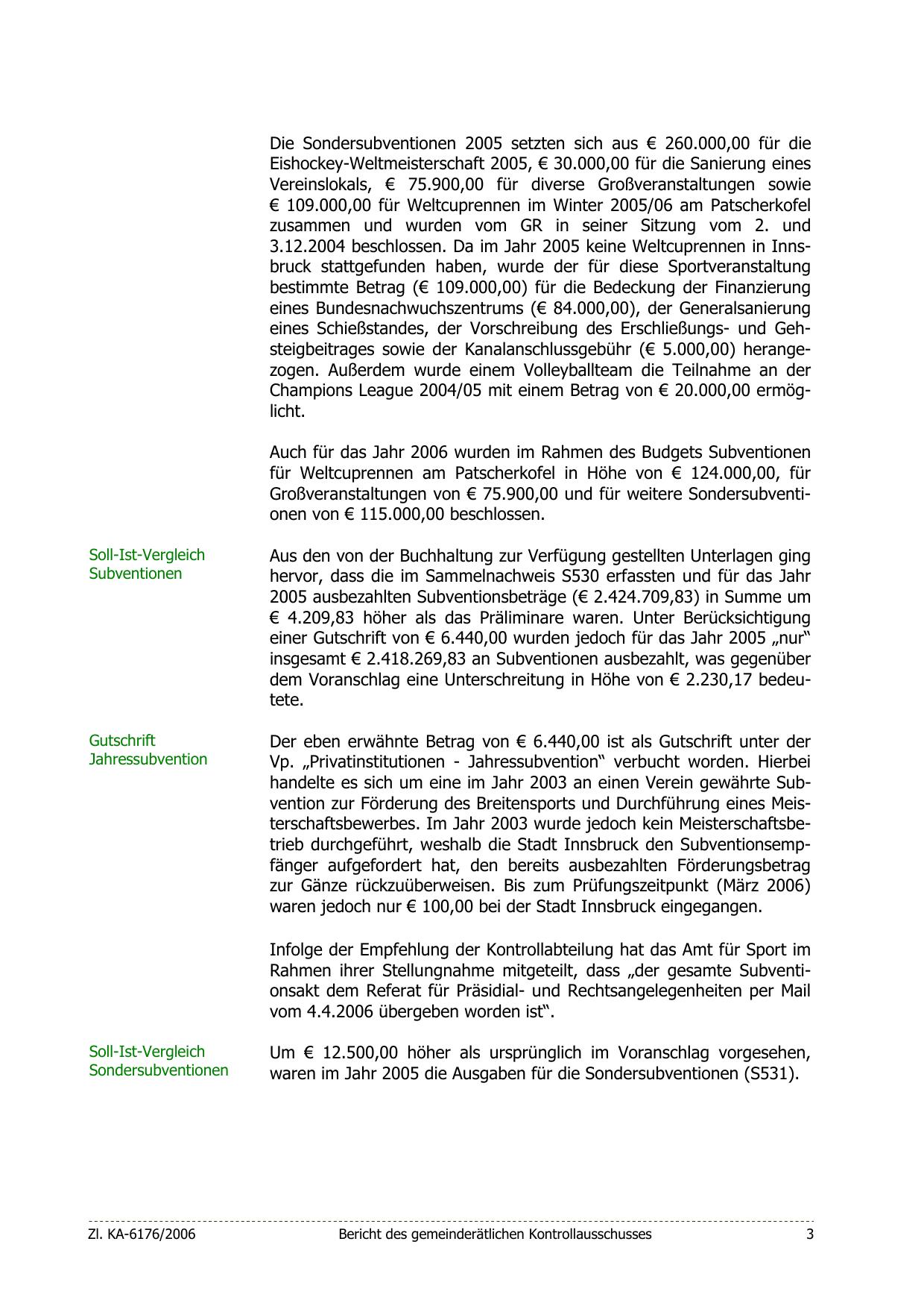 handelte es sich um eine im Jahr 2003 an einen Verein gewährte Subvention zur Förderung des Breitensports und Durchführung eines Meisterschaftsbewerbes. Im Jahr 2003 wurde jedoch kein Meisterschaftsbetrieb durchgeführt, weshalb die Stadt Innsbruck den Subventionsempfänger aufgefordert hat, den bereits ausbezahlten Förderungsbetrag