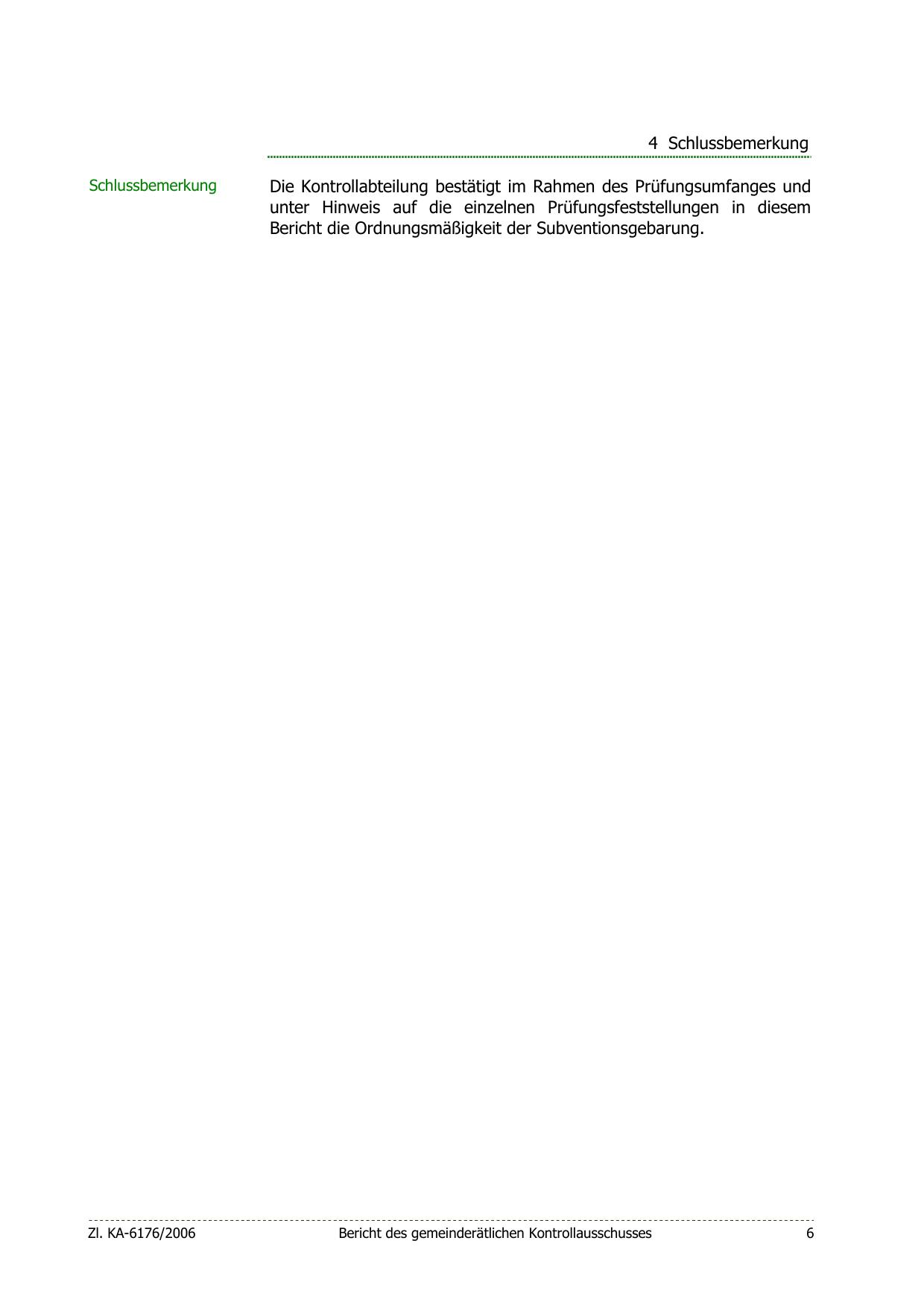 Bericht die Ordnungsmäßigkeit der Subventionsgebarung.