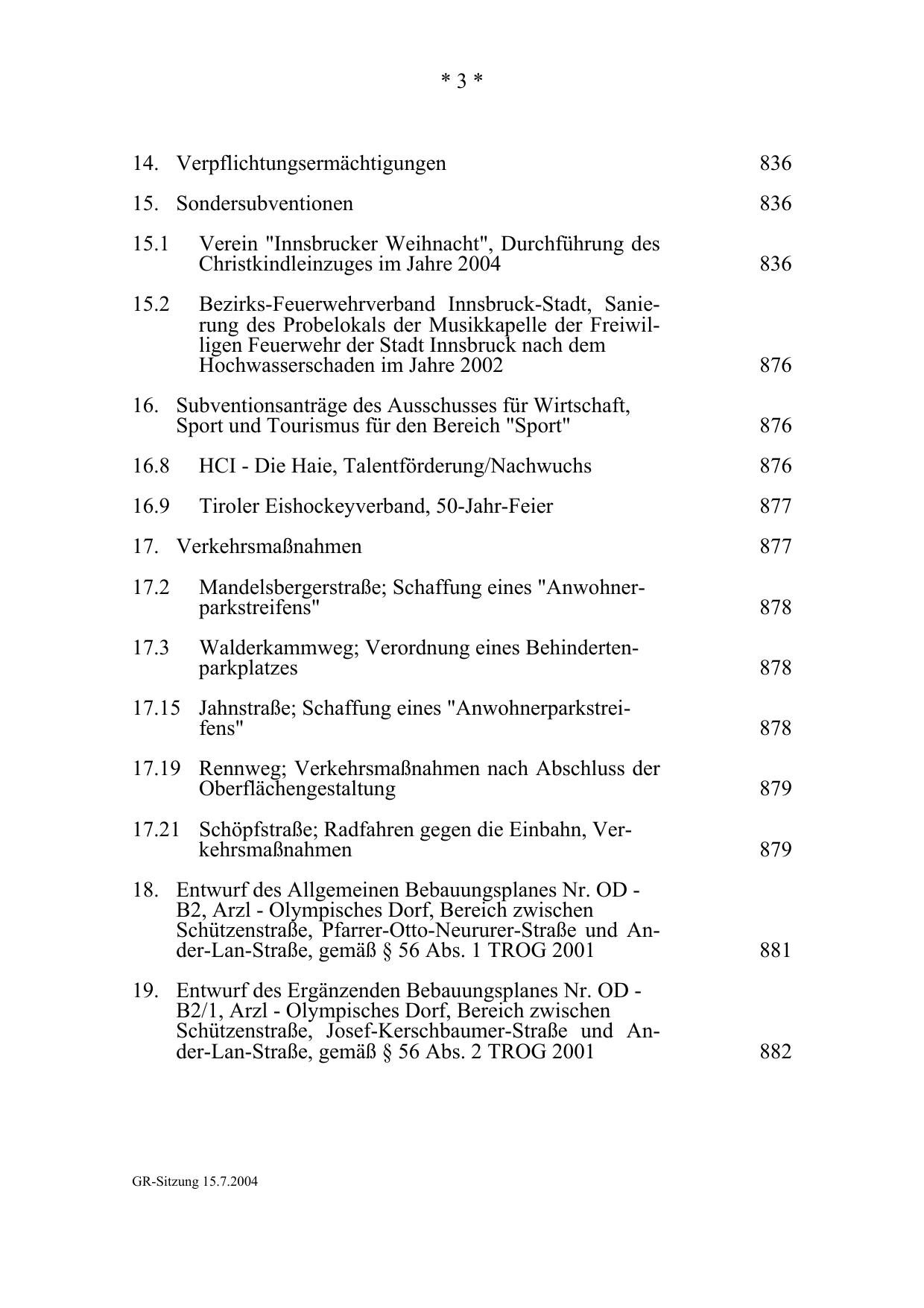 18. Entwurf des Allgemeinen Bebauungsplanes Nr. OD B2, Arzl - Olympisches Dorf, Bereich zwischen