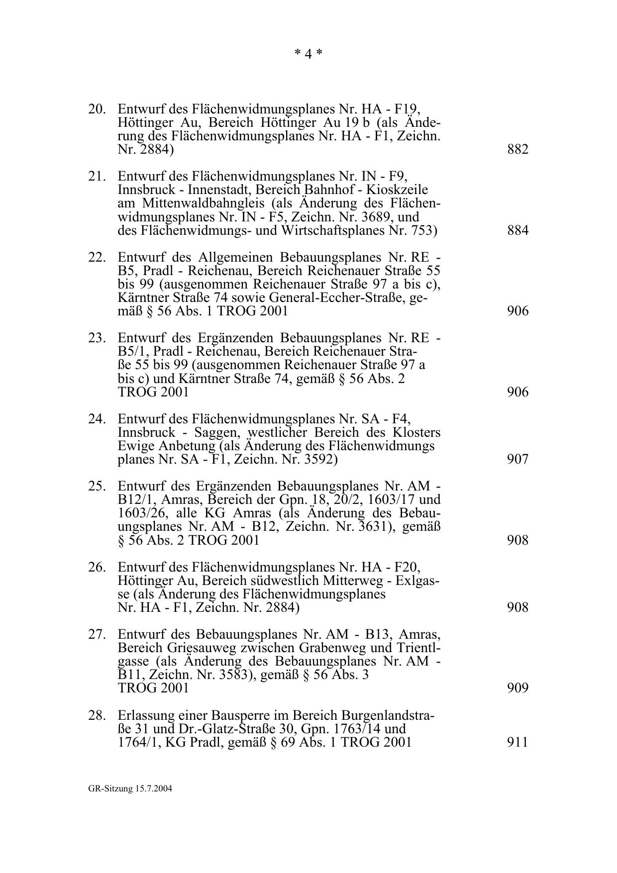 am Mittenwaldbahngleis (als Änderung des Flächenwidmungsplanes Nr. IN - F5, Zeichn. Nr. 3689, und
