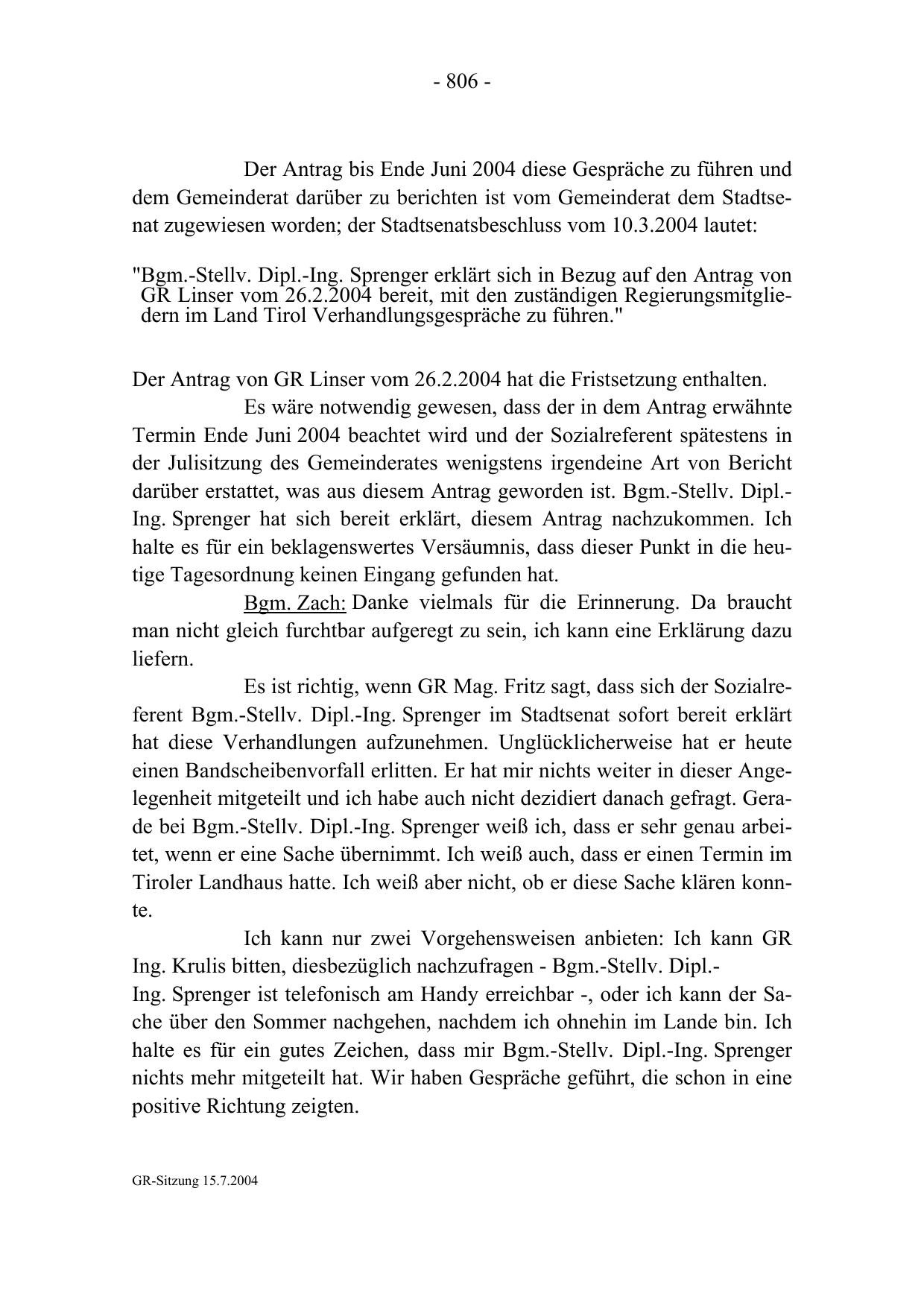 GR Linser vom 26.2.2004 bereit, mit den zuständigen Regierungsmitgliedern im Land Tirol Verhandlungsgespräche zu führen."