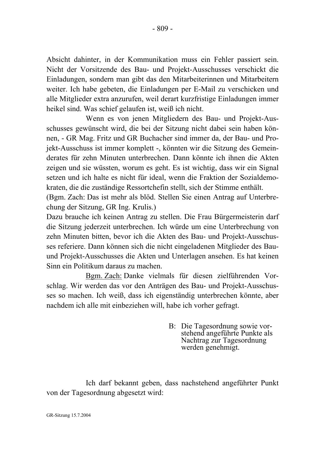 Bgm. Zach: Danke vielmals für diesen zielführenden Vorschlag. Wir werden das vor den Anträgen des Bau- und Projekt-Ausschusses so machen. Ich weiß, dass ich eigenständig unterbrechen könnte, aber