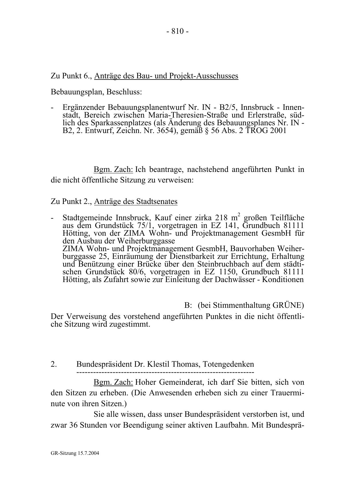 ---------------------------------------------------------------Bgm. Zach: Hoher Gemeinderat, ich darf Sie bitten, sich von