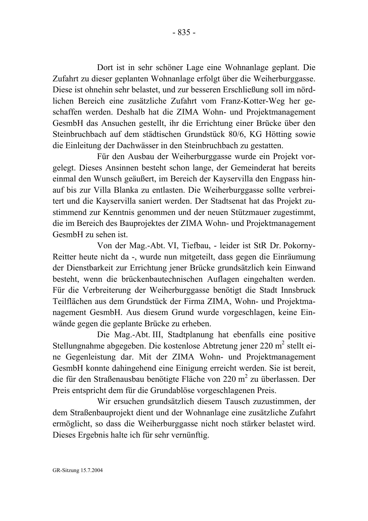 Teilflächen aus dem Grundstück der Firma ZIMA, Wohn- und Projektmanagement GesmbH. Aus diesem Grund wurde vorgeschlagen, keine Einwände gegen die geplante Brücke zu erheben.