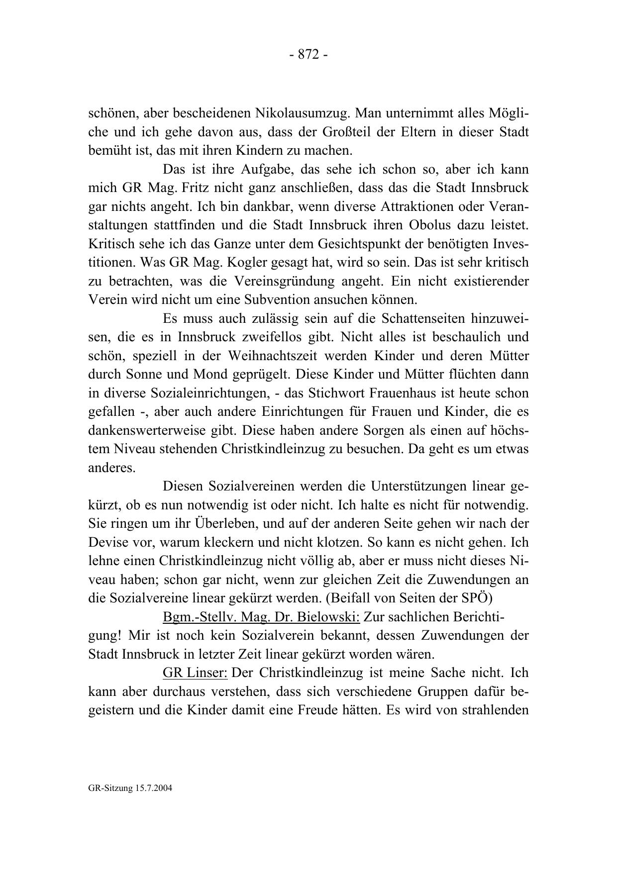 Bgm.-Stellv. Mag. Dr. Bielowski: Zur sachlichen Berichtigung! Mir ist noch kein Sozialverein bekannt, dessen Zuwendungen der