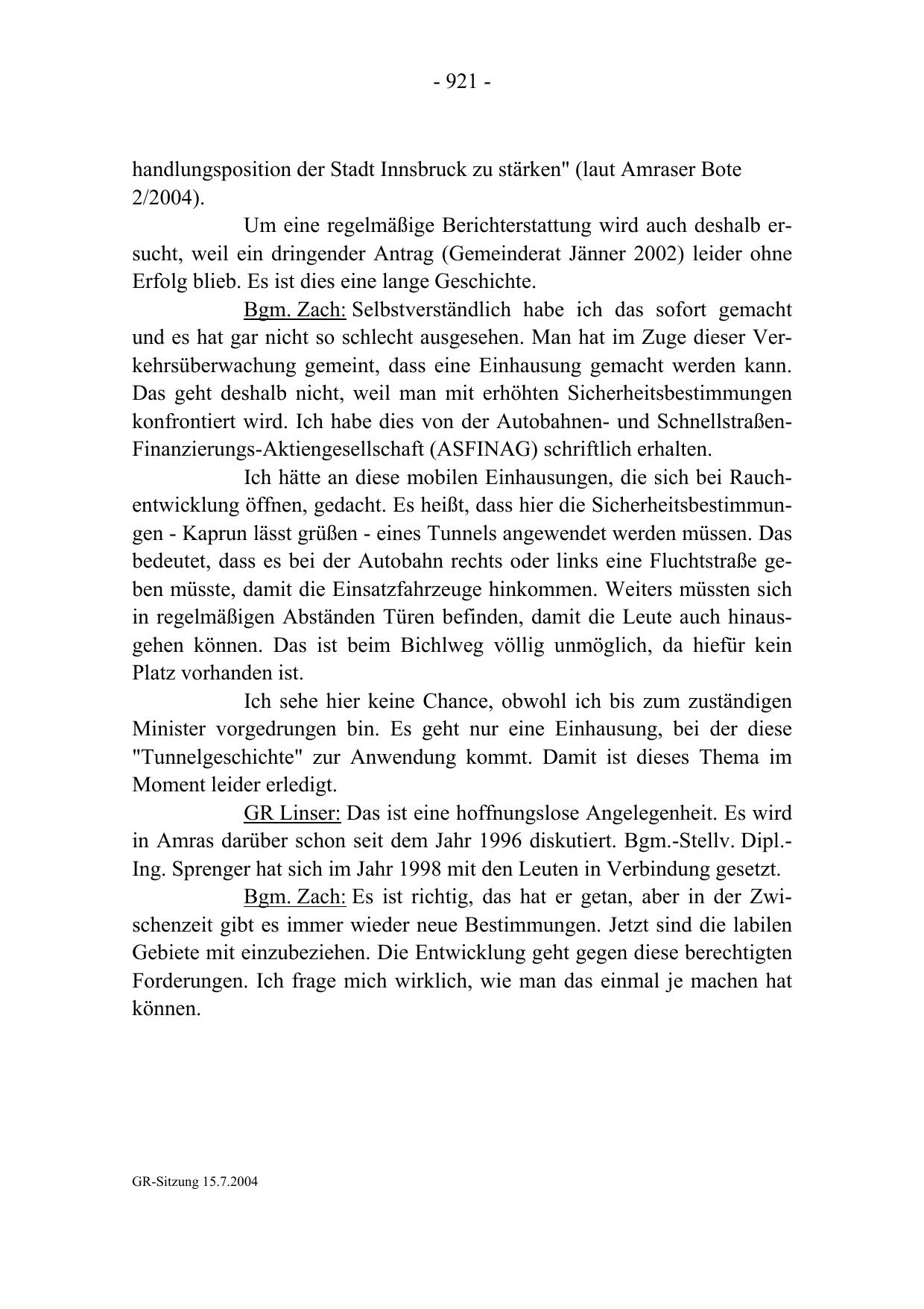in Amras darüber schon seit dem Jahr 1996 diskutiert. Bgm.-Stellv. Dipl.Ing. Sprenger hat sich im Jahr 1998 mit den Leuten in Verbindung gesetzt.