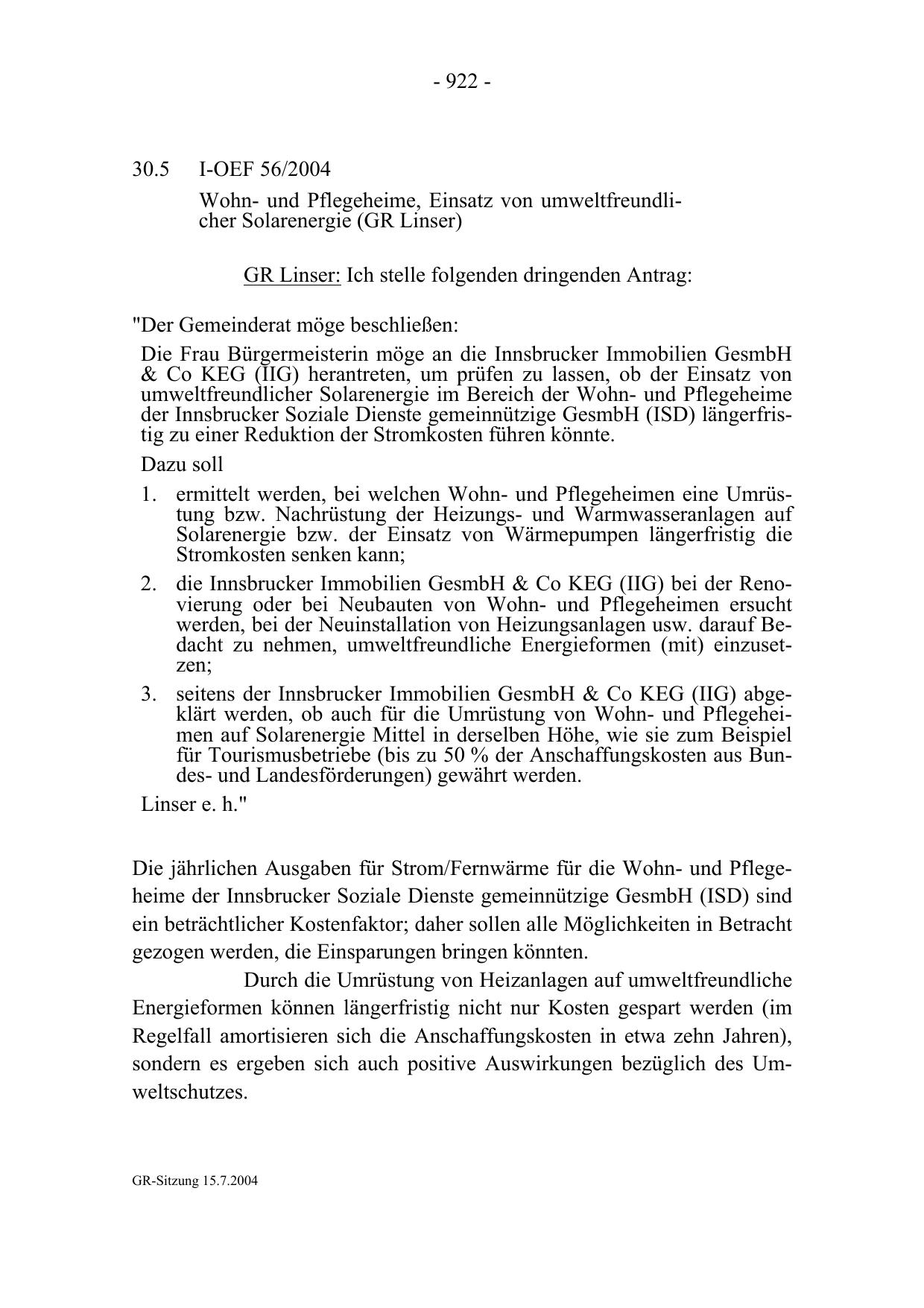 3. seitens der Innsbrucker Immobilien GesmbH & Co KEG (IIG) abgeklärt werden, ob auch für die Umrüstung von Wohn- und Pflegeheimen auf Solarenergie Mittel in derselben Höhe, wie sie zum Beispiel