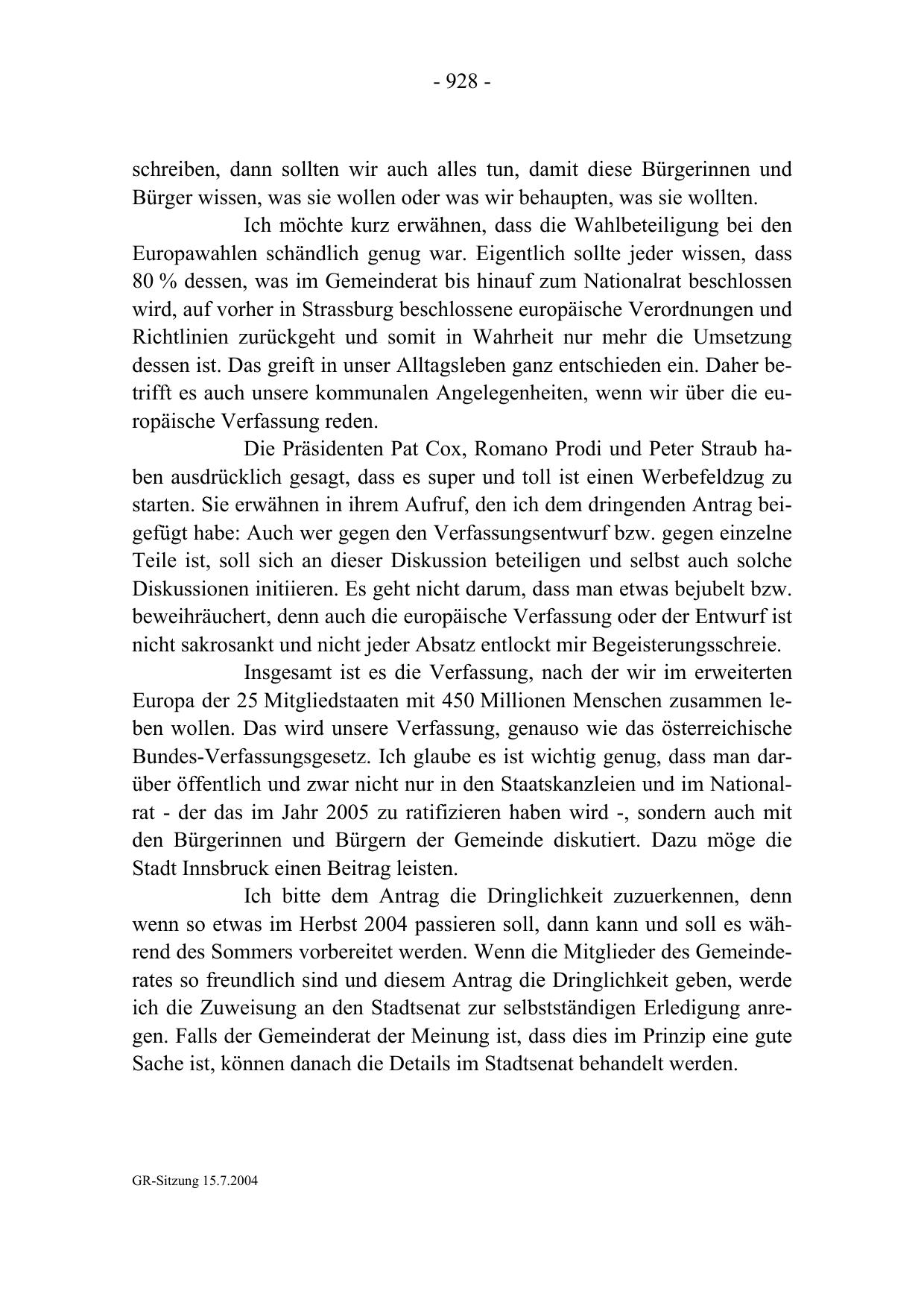 Bundes-Verfassungsgesetz. Ich glaube es ist wichtig genug, dass man darüber öffentlich und zwar nicht nur in den Staatskanzleien und im Nationalrat - der das im Jahr 2005 zu ratifizieren haben wird -, sondern auch mit