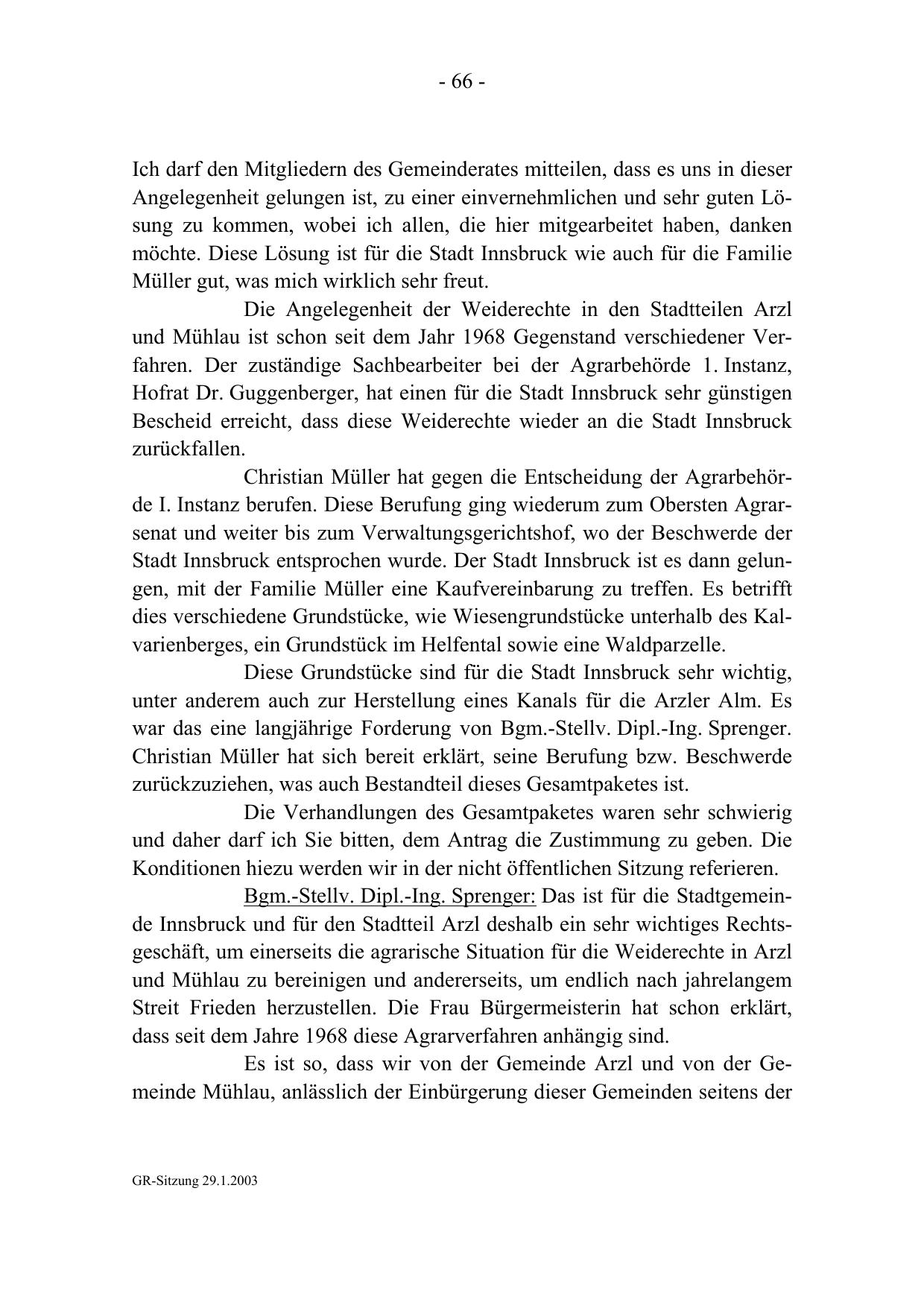 Stadt Innsbruck entsprochen wurde. Der Stadt Innsbruck ist es dann gelungen, mit der Familie Müller eine Kaufvereinbarung zu treffen. Es betrifft