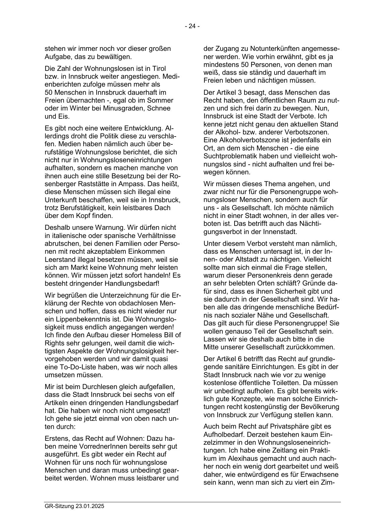 nicht in einer Stadt wohnen, in der alles verboten ist. Das betrifft auch das Nächtigungsverbot in der Innenstadt.