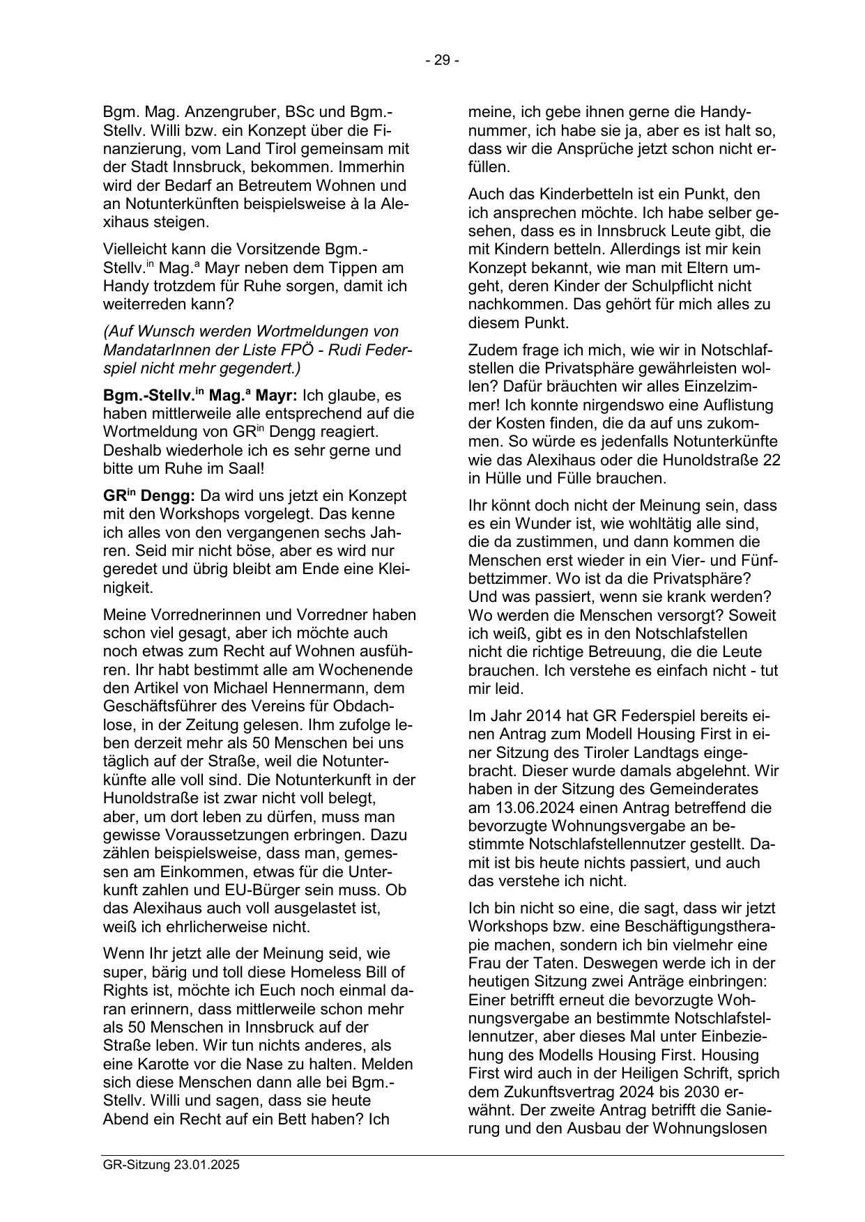 Im Jahr 2014 hat GR Federspiel bereits einen Antrag zum Modell Housing First in einer Sitzung des Tiroler Landtags eingebracht. Dieser wurde damals abgelehnt. Wir