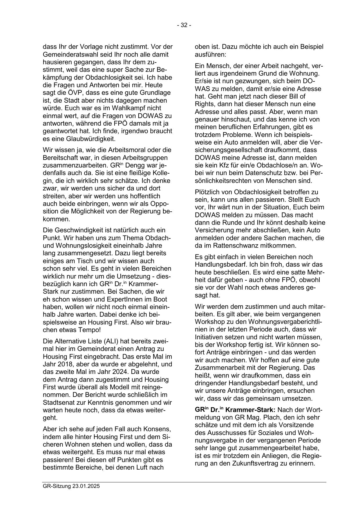 GRin Dr.in Krammer-Stark: Nach der Wortmeldung von GR Mag. Plach, den ich sehr