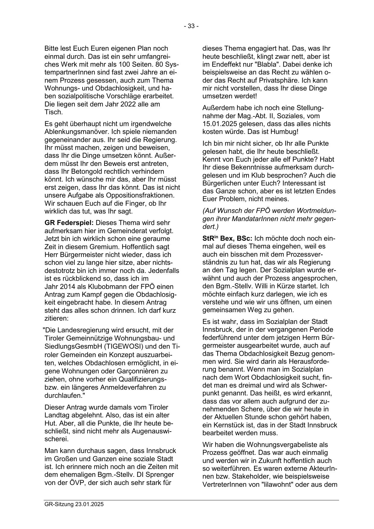 (Auf Wunsch der FPÖ werden Wortmeldungen ihrer MandatarInnen nicht mehr gegendert.)
