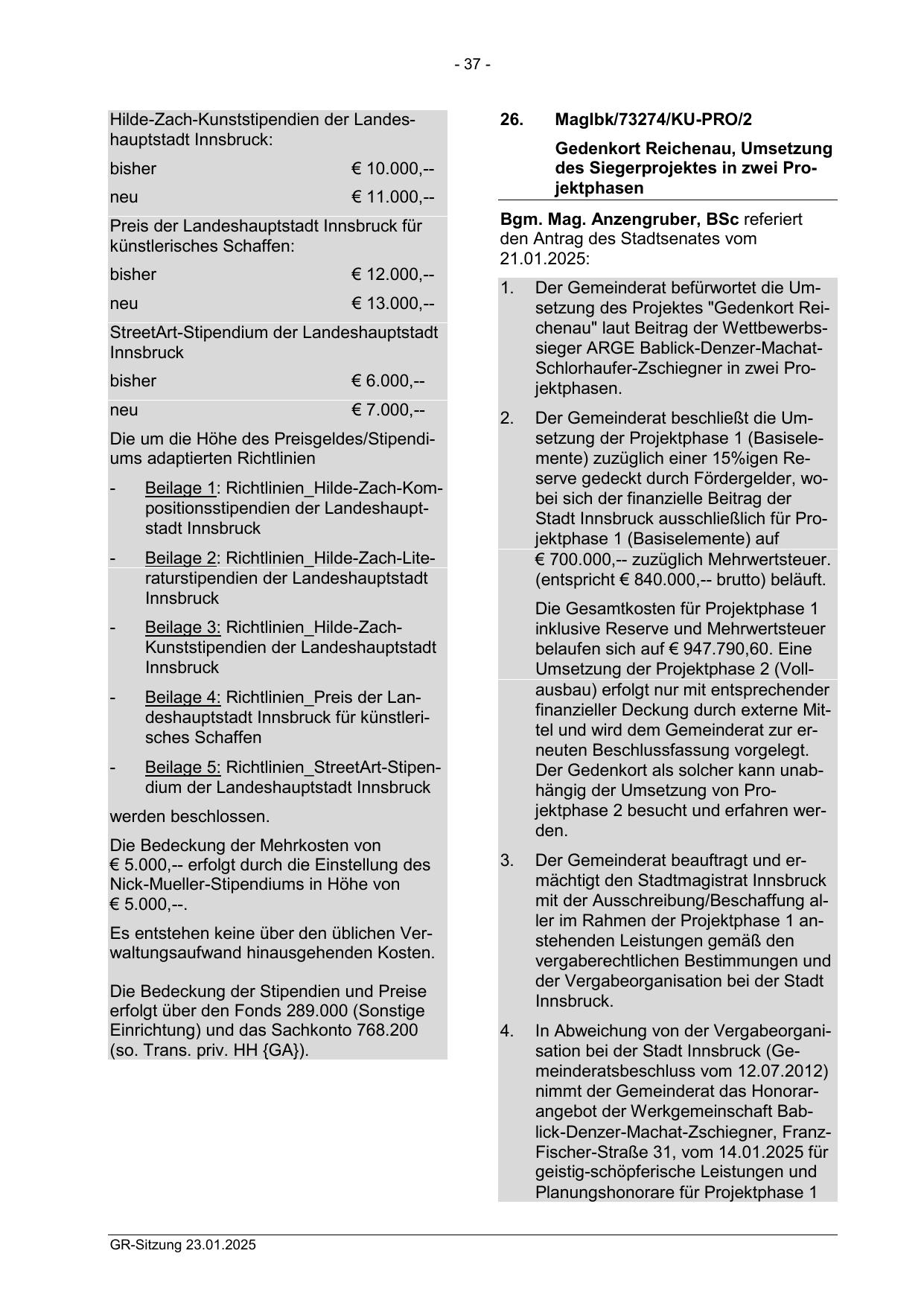 finanzieller Deckung durch externe Mittel und wird dem Gemeinderat zur erneuten Beschlussfassung vorgelegt.