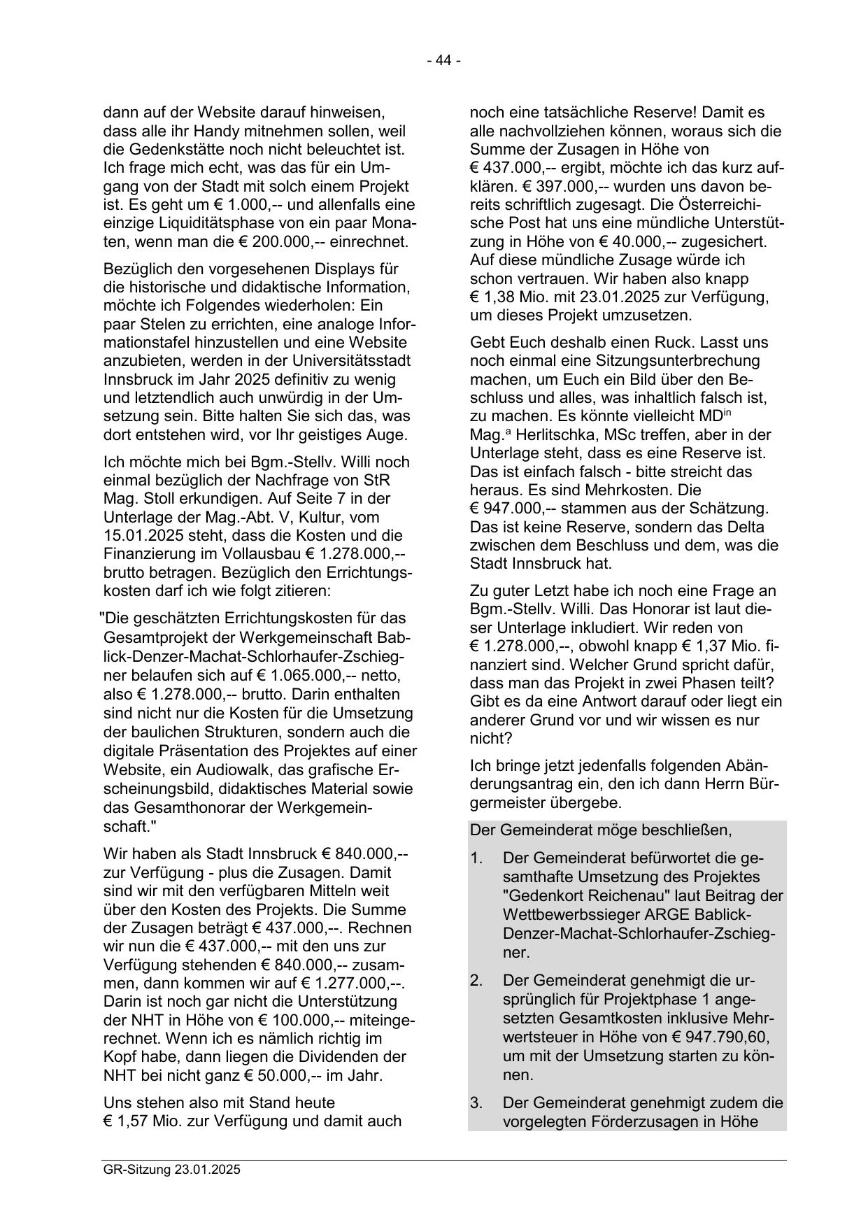 Wir haben als Stadt Innsbruck € 840.000,-zur Verfügung - plus die Zusagen. Damit