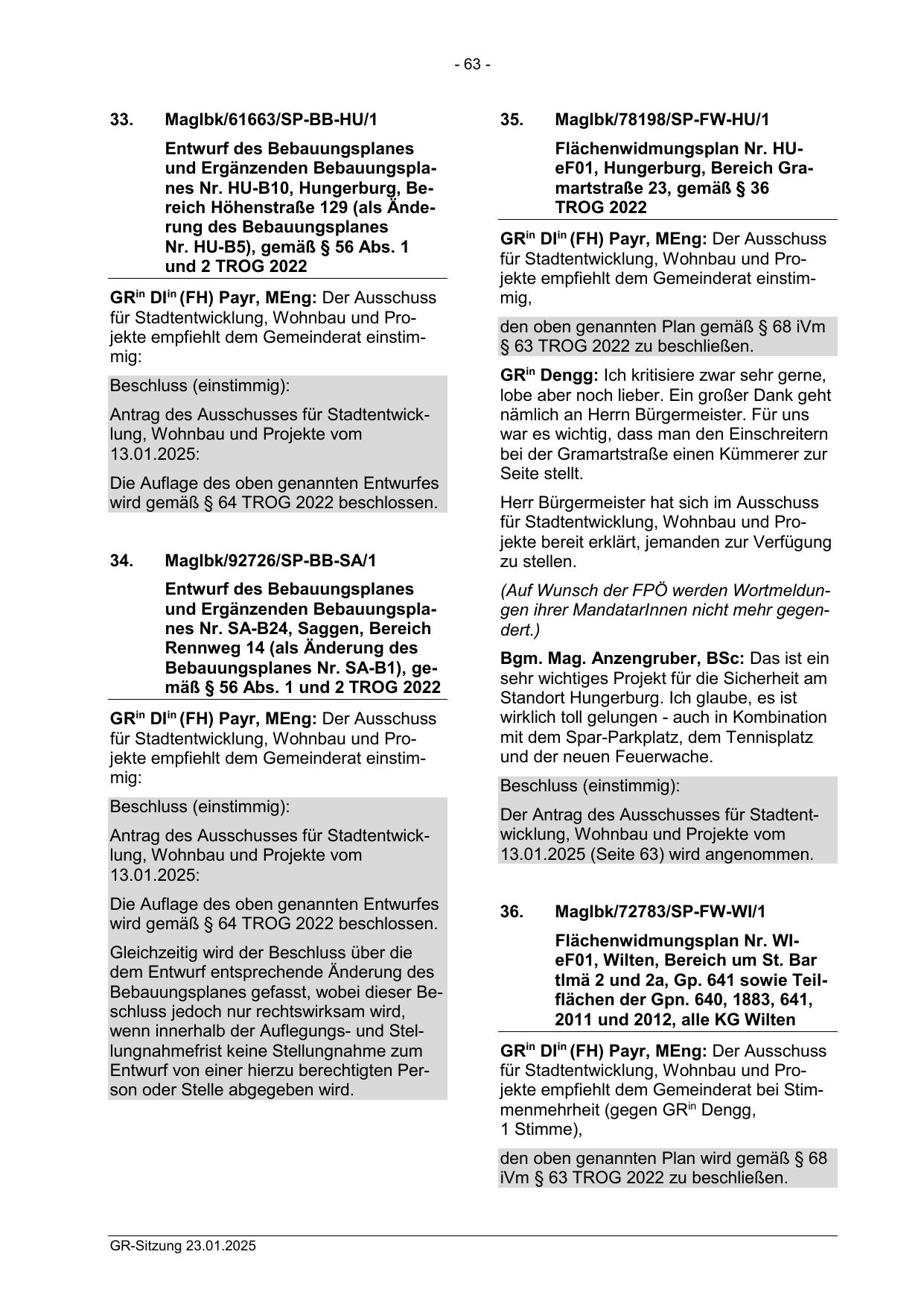 iVm § 63 TROG 2022 zu beschließen.