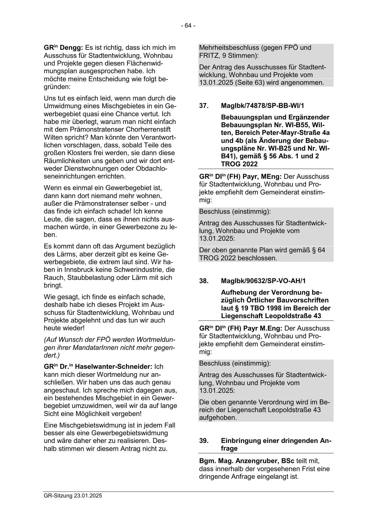 (Auf Wunsch der FPÖ werden Wortmeldungen ihrer MandatarInnen nicht mehr gegendert.)