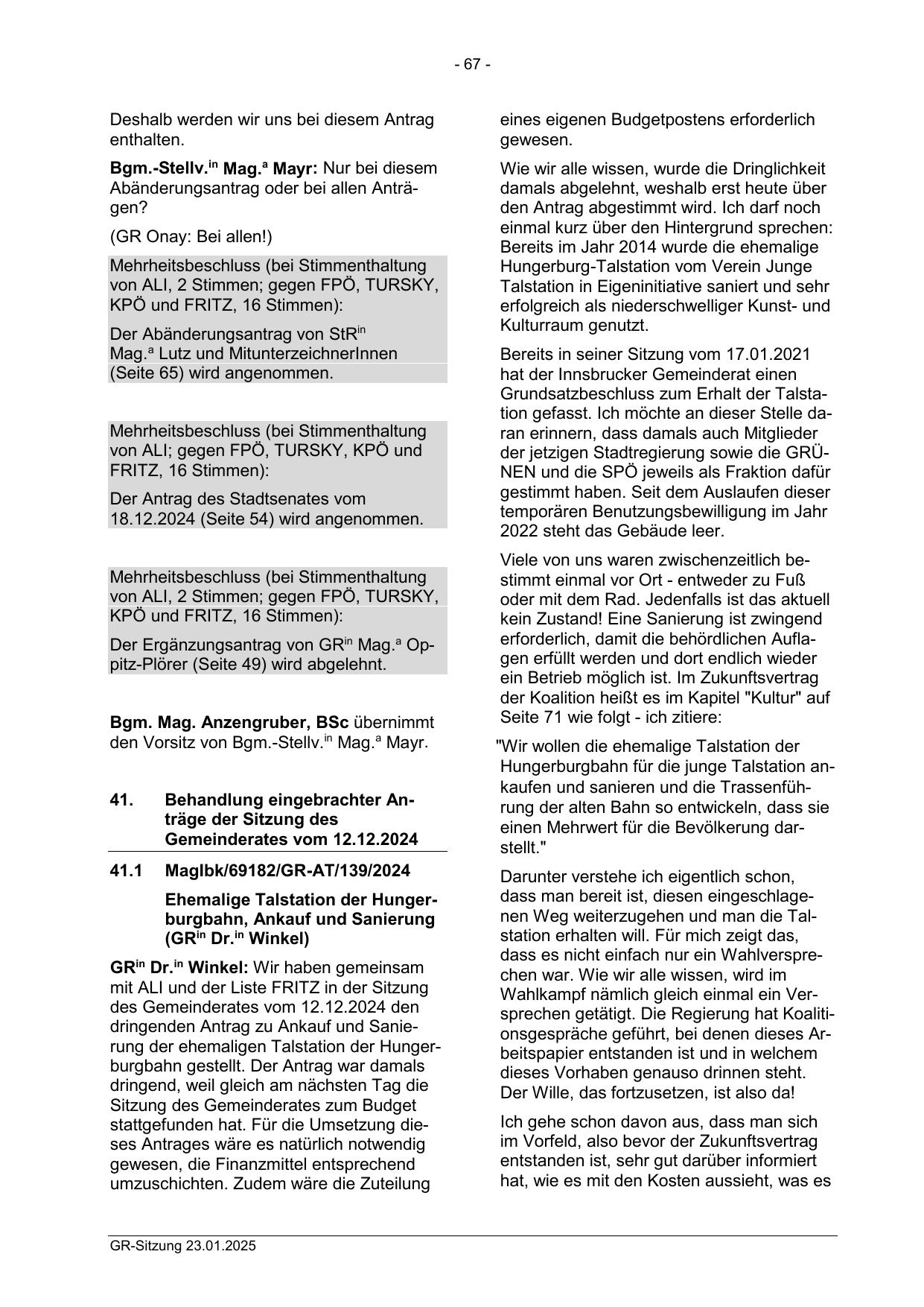 Grundsatzbeschluss zum Erhalt der Talstation gefasst. Ich möchte an dieser Stelle daran erinnern, dass damals auch Mitglieder