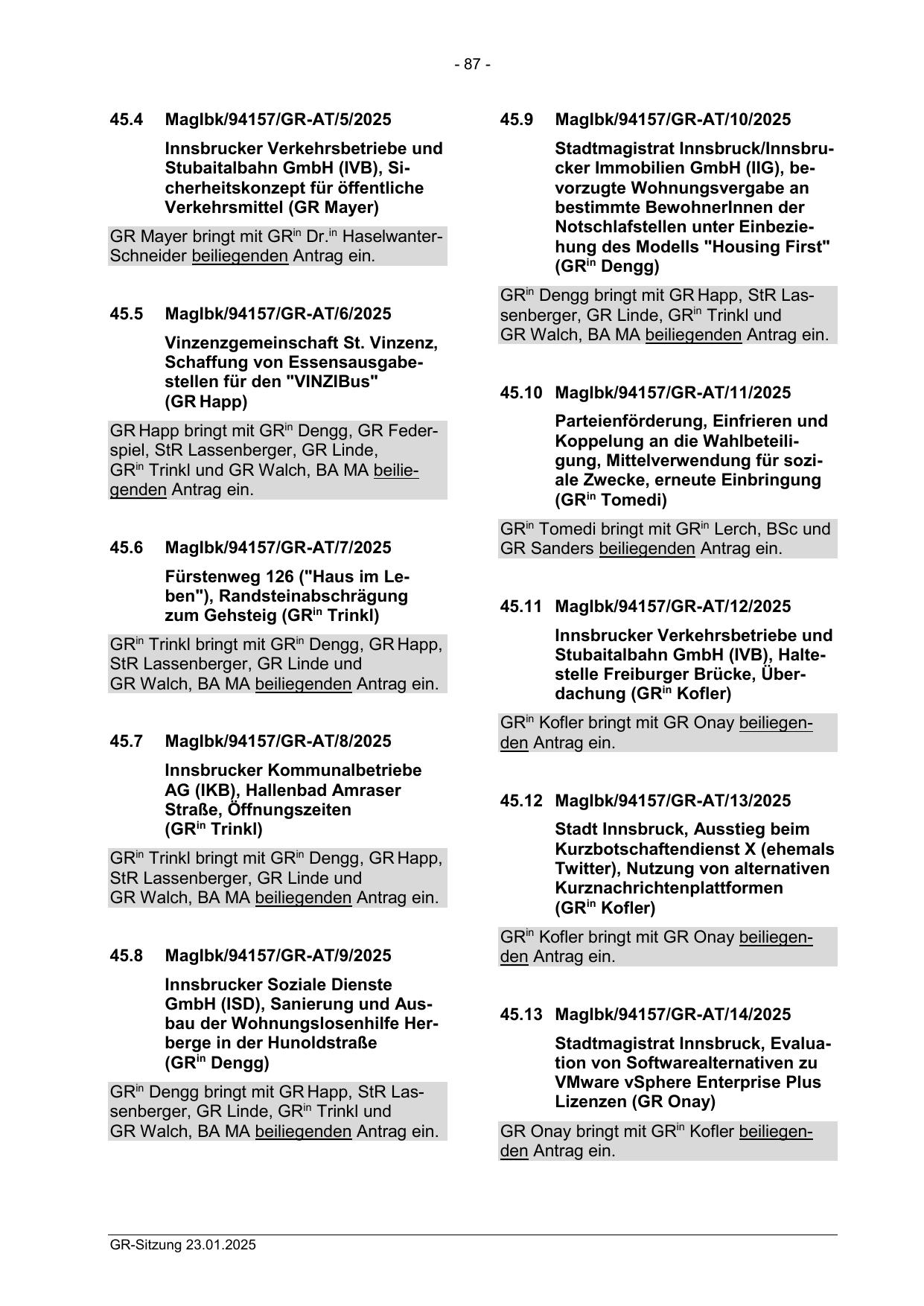 GR Happ bringt mit GRin Dengg, GR Federspiel, StR Lassenberger, GR Linde,