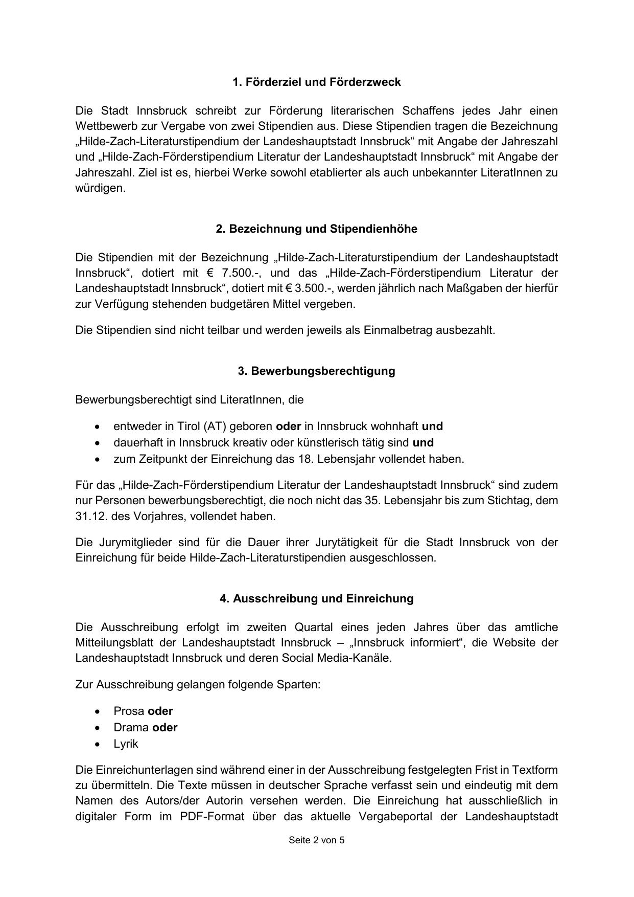und „Hilde-Zach-Förderstipendium Literatur der Landeshauptstadt Innsbruck“ mit Angabe der
