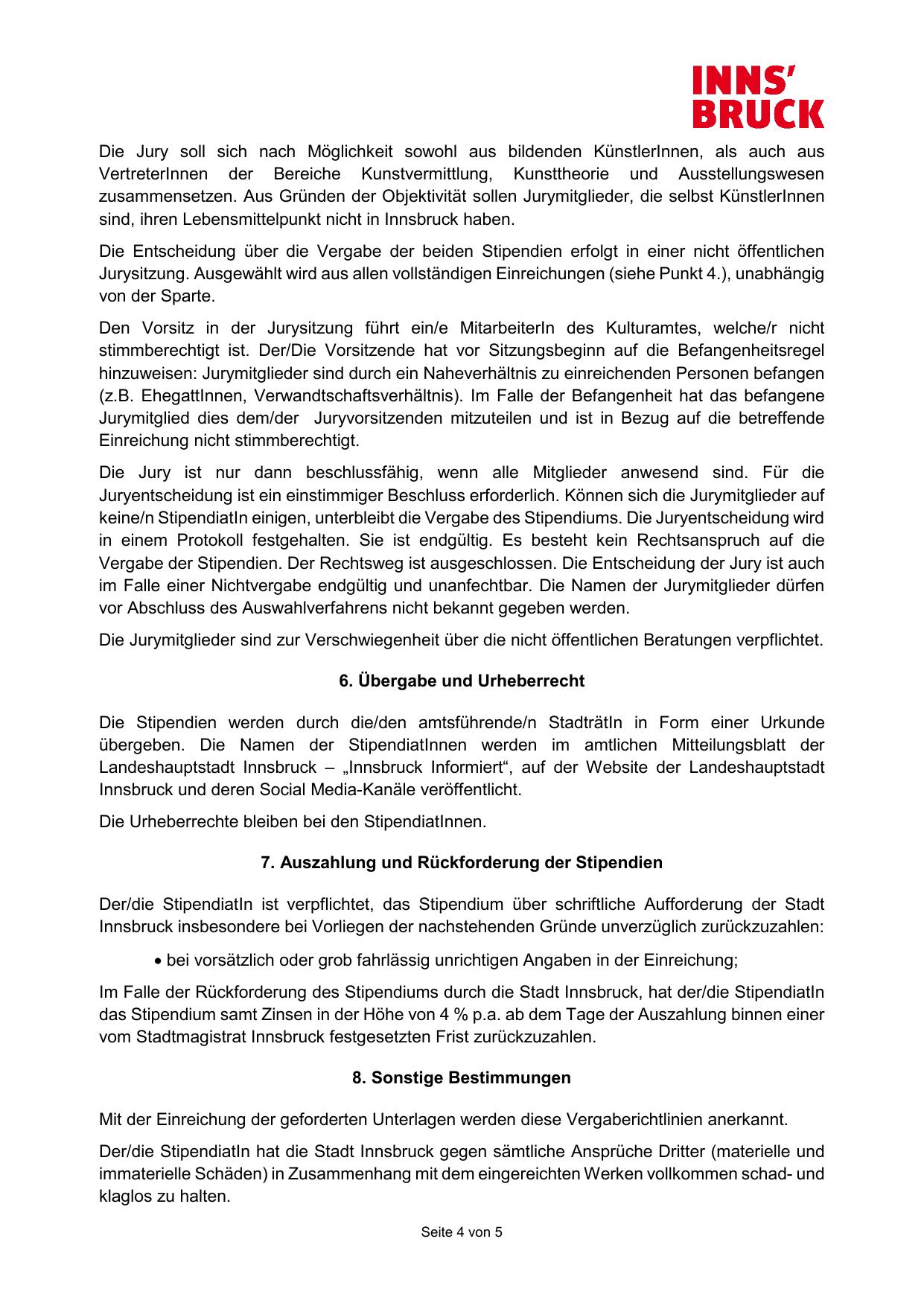 Der/die StipendiatIn hat die Stadt Innsbruck gegen sämtliche Ansprüche Dritter (materielle und