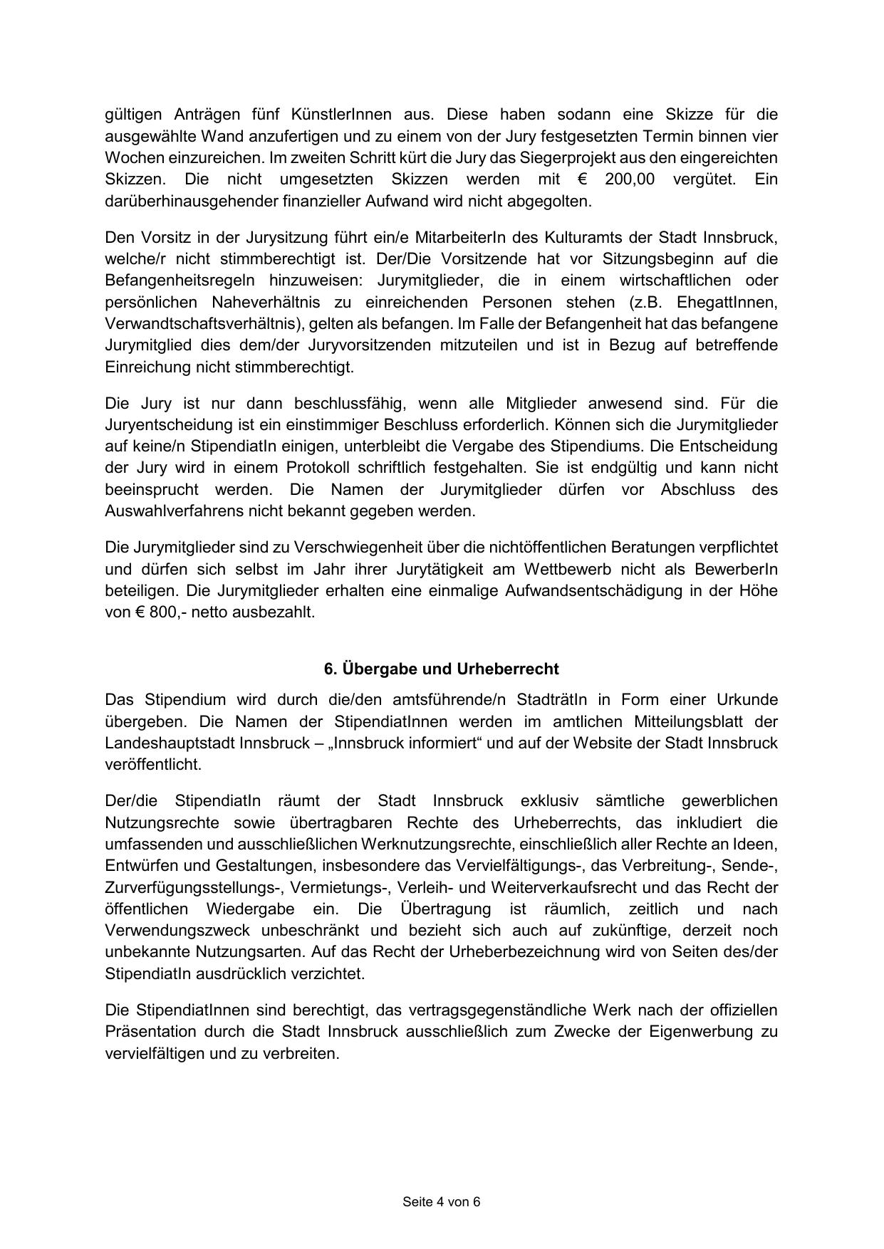 Der/die StipendiatIn räumt der Stadt Innsbruck exklusiv sämtliche gewerblichen