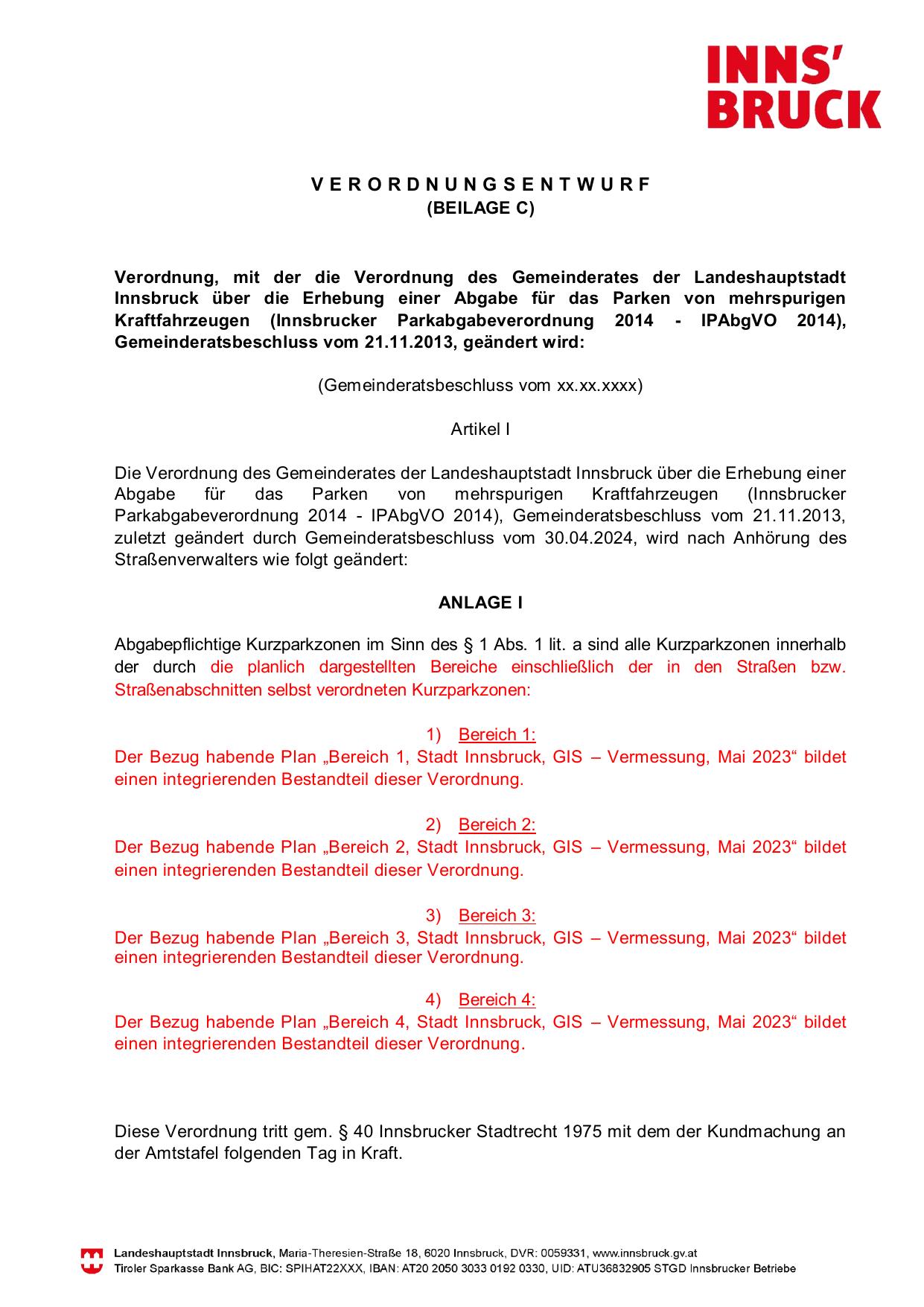 Kraftfahrzeugen (Innsbrucker Parkabgabeverordnung 2014 - IPAbgVO 2014),