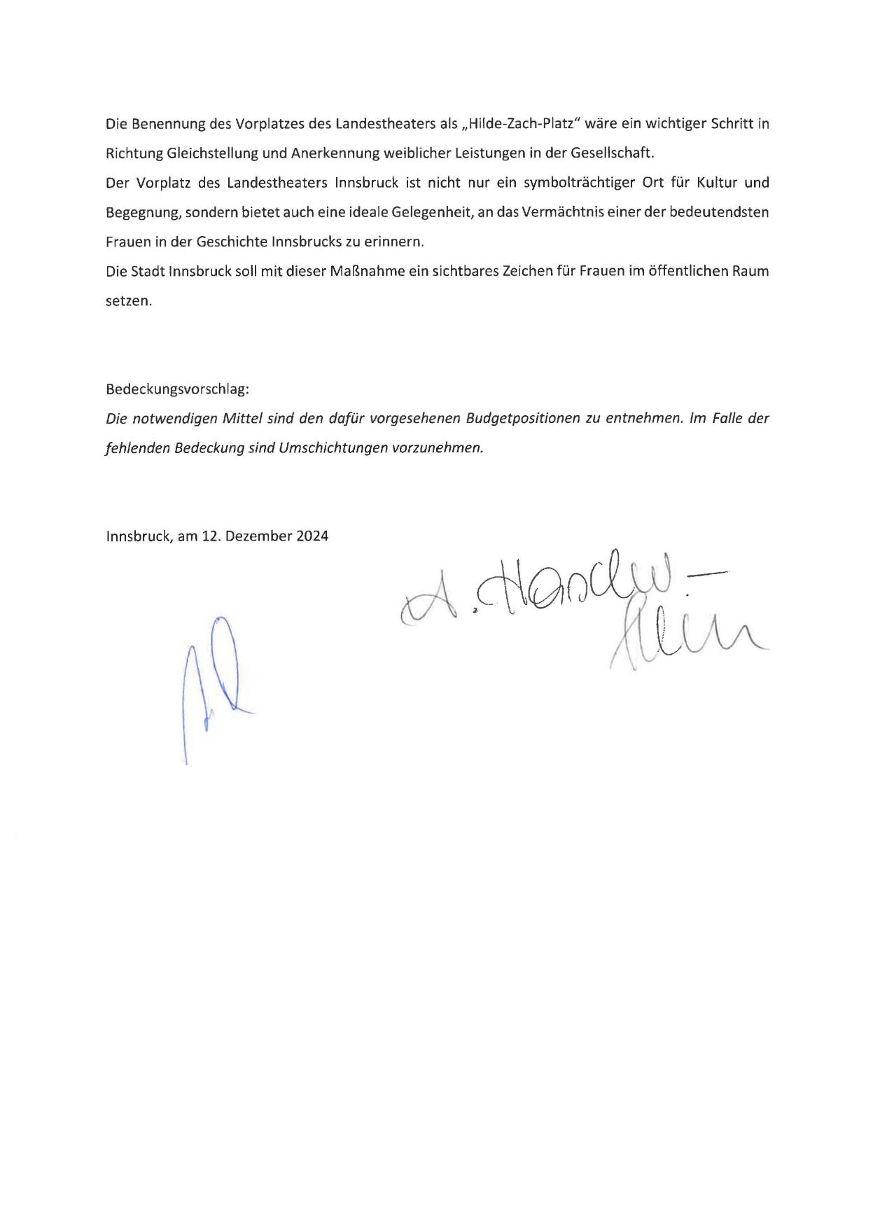 Die Benennung des Vorplatzes des Landestheaters als „Hilde-Zach-Platz“ wäre ein wichtiger Schritt in