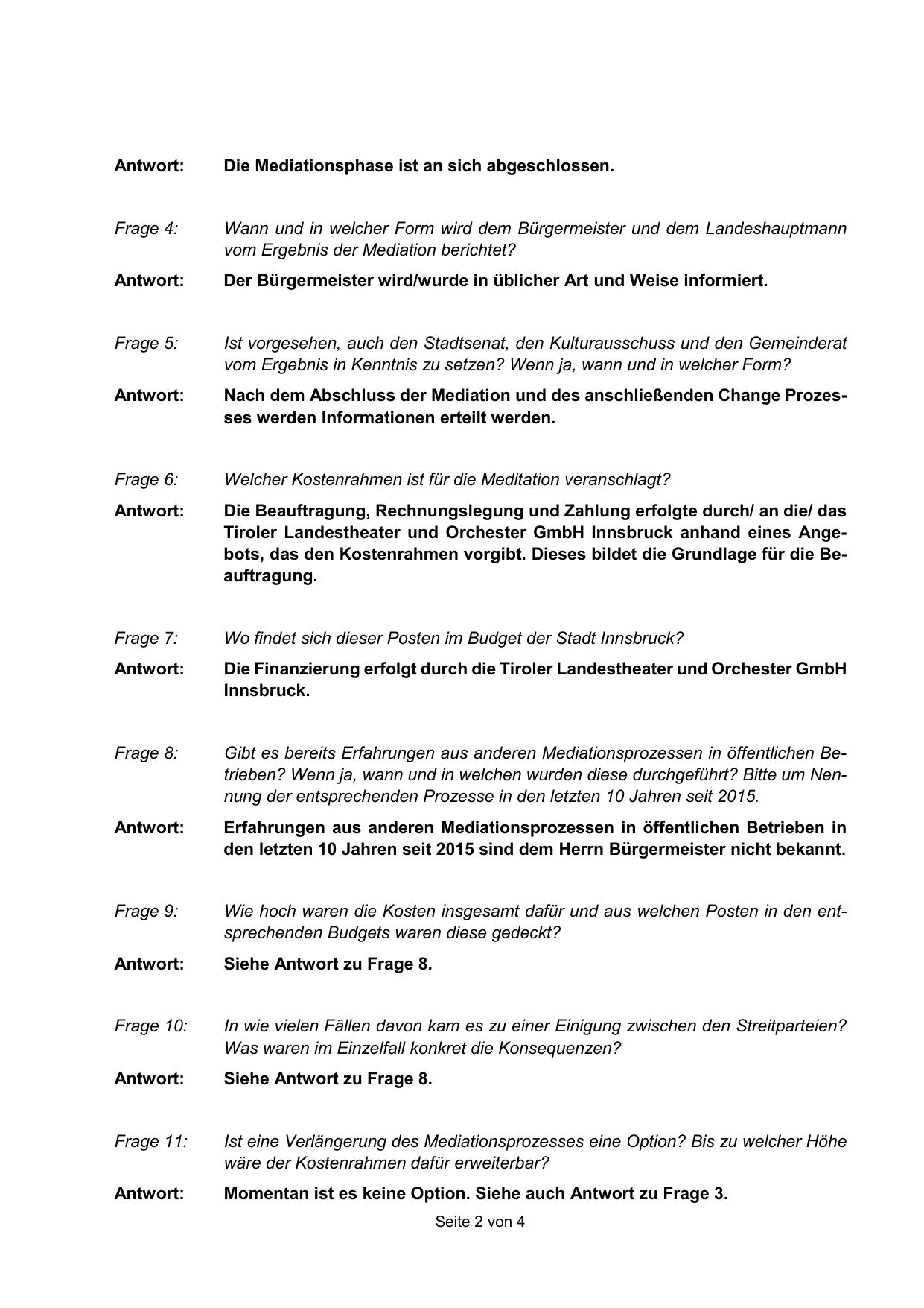 Tiroler Landestheater und Orchester GmbH Innsbruck anhand eines Angebots, das den Kostenrahmen vorgibt. Dieses bildet die Grundlage für die Beauftragung.