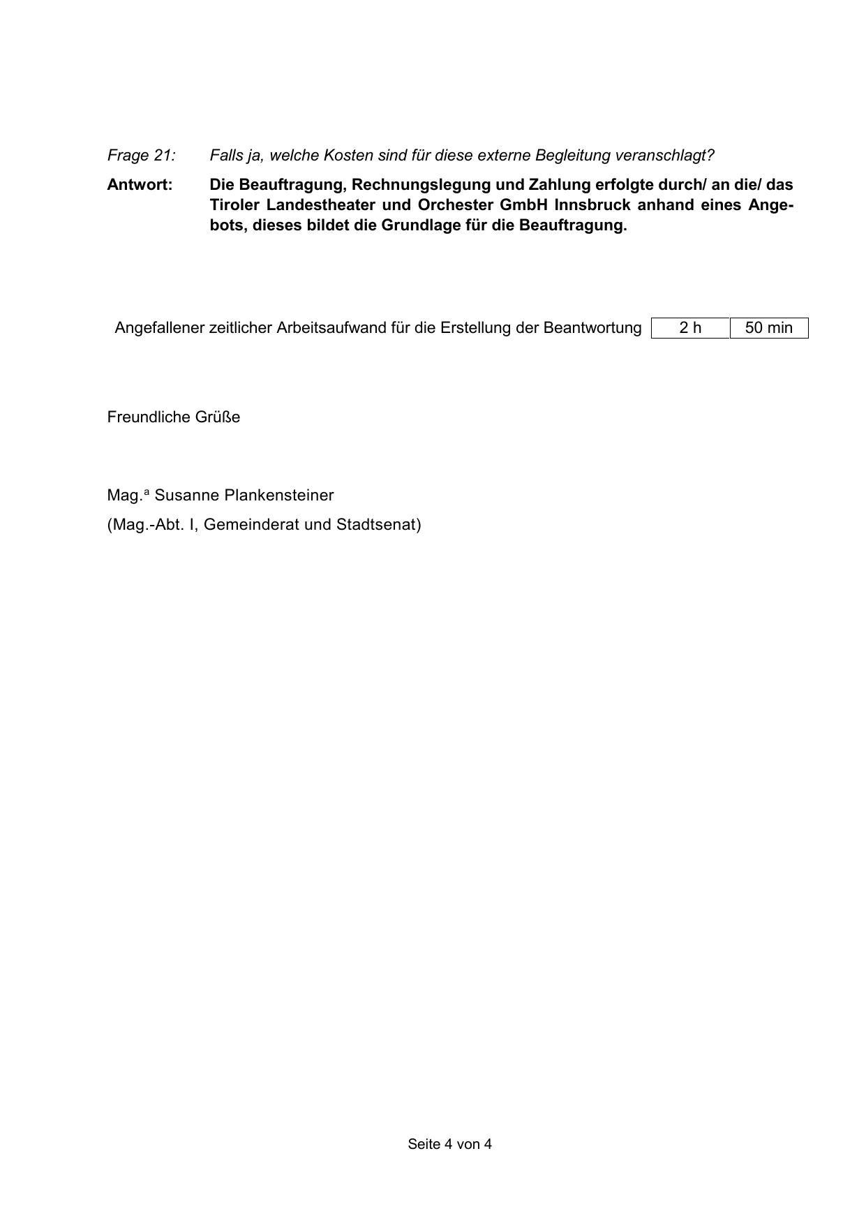 Angefallener zeitlicher Arbeitsaufwand für die Erstellung der Beantwortung