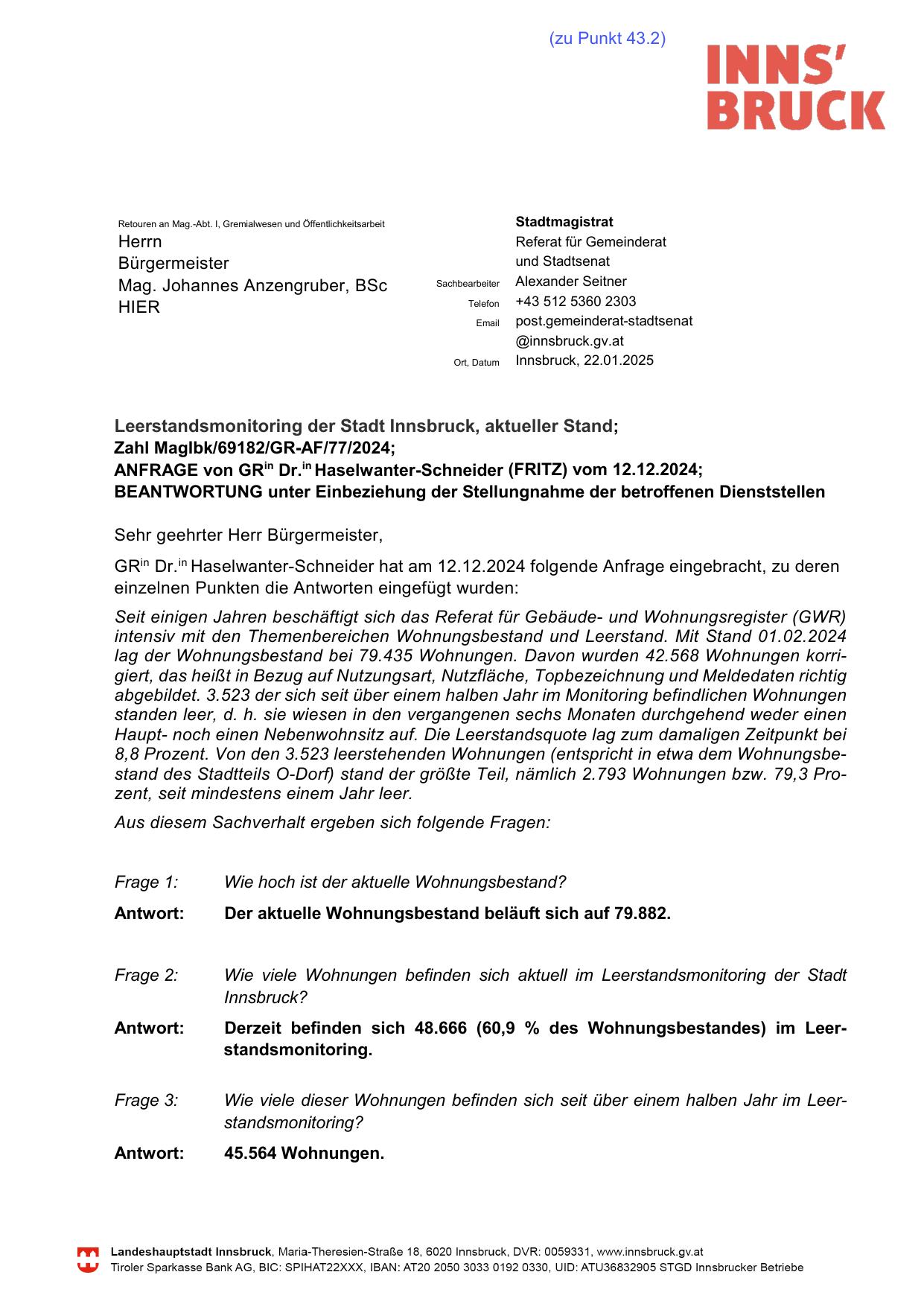 Leerstandsmonitoring der Stadt Innsbruck, aktueller Stand;
