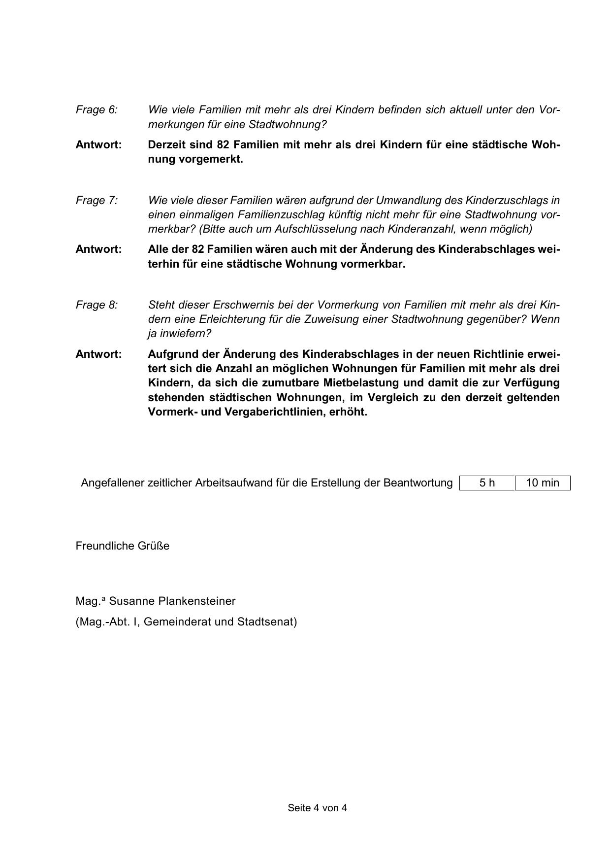 einen einmaligen Familienzuschlag künftig nicht mehr für eine Stadtwohnung vormerkbar? (Bitte auch um Aufschlüsselung nach Kinderanzahl, wenn möglich)