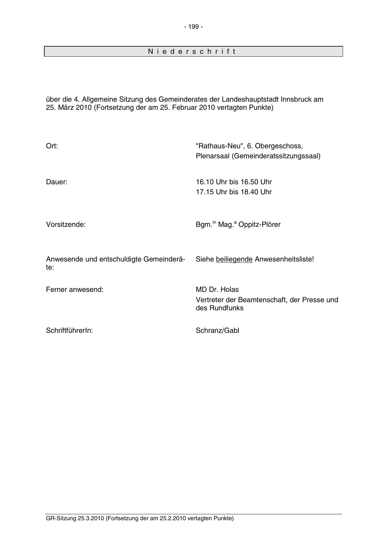 GR-Sitzung 25.3.2010 (Fortsetzung der am 25.2.2010 vertagten Punkte)