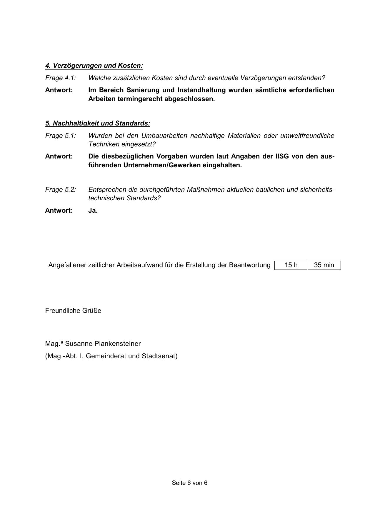Angefallener zeitlicher Arbeitsaufwand für die Erstellung der Beantwortung