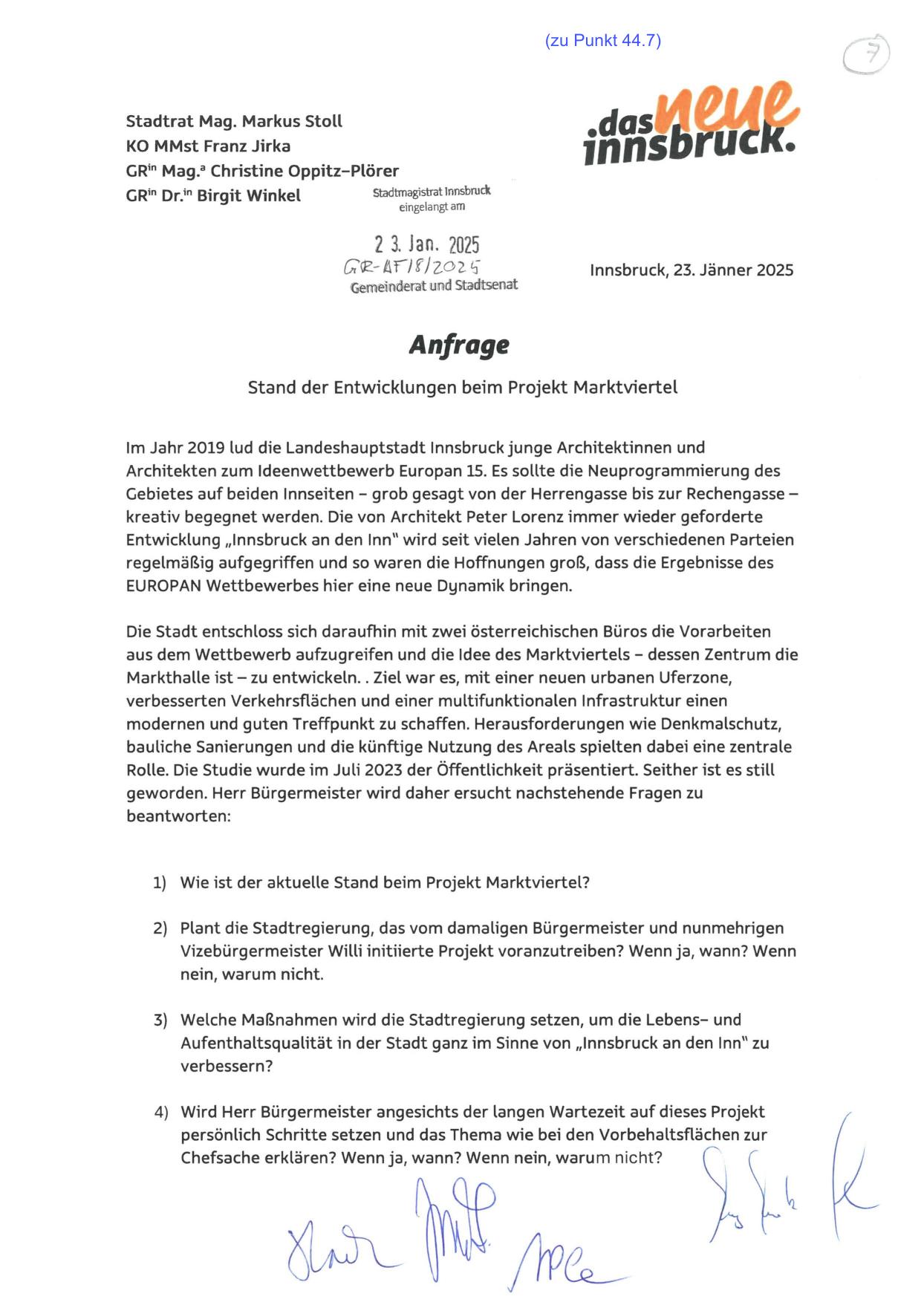 Wie ist der aktuelle Stand beim Projekt Marktviertel?