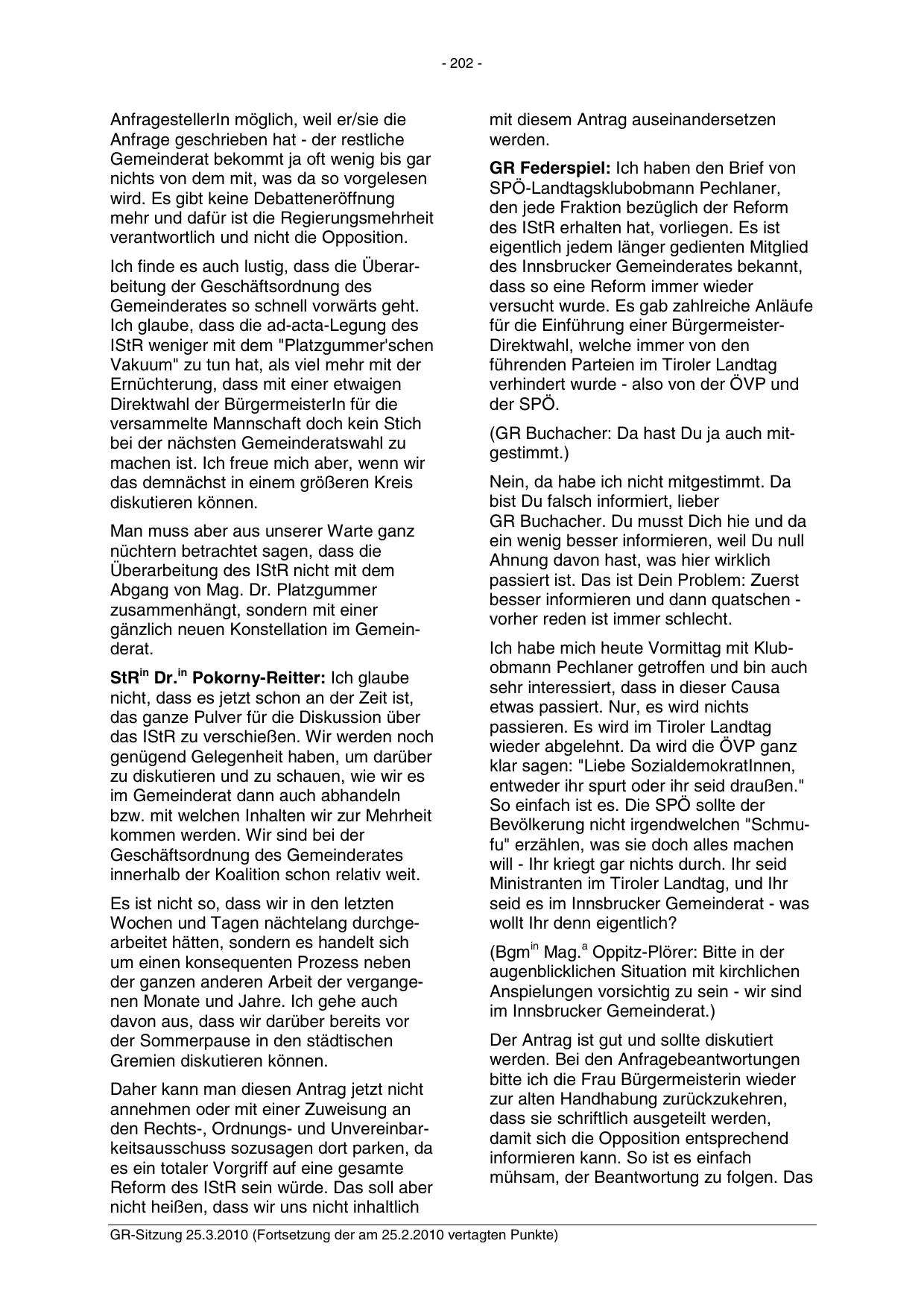 GR-Sitzung 25.3.2010 (Fortsetzung der am 25.2.2010 vertagten Punkte)