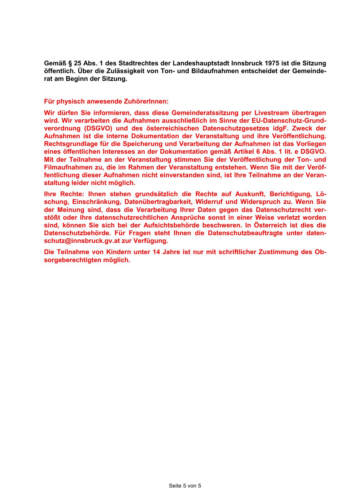 Gemäß § 25 Abs. 1 des Stadtrechtes der Landeshauptstadt Innsbruck 1975 ist die Sitzung