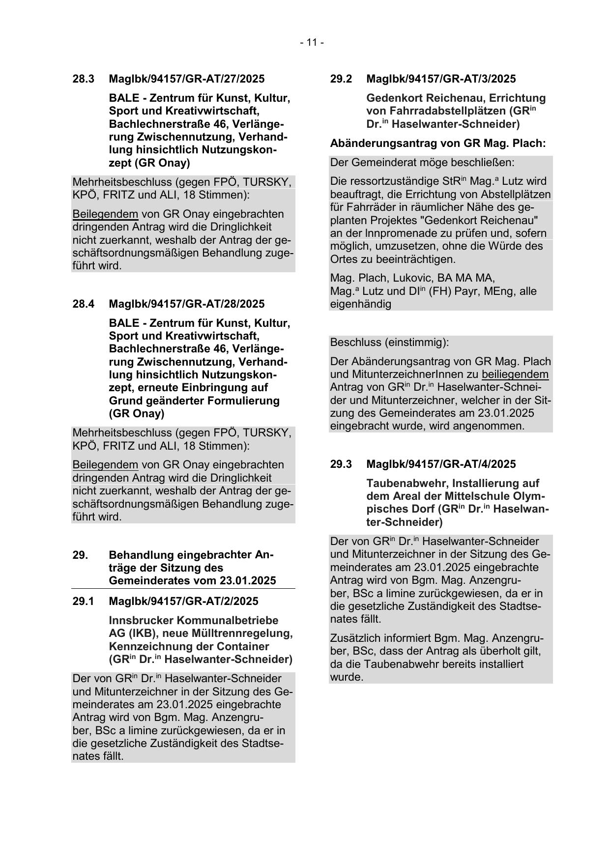Antrag von GRin Dr.in Haselwanter-Schneider und Mitunterzeichner, welcher in der Sitzung des Gemeinderates am 23.01.2025