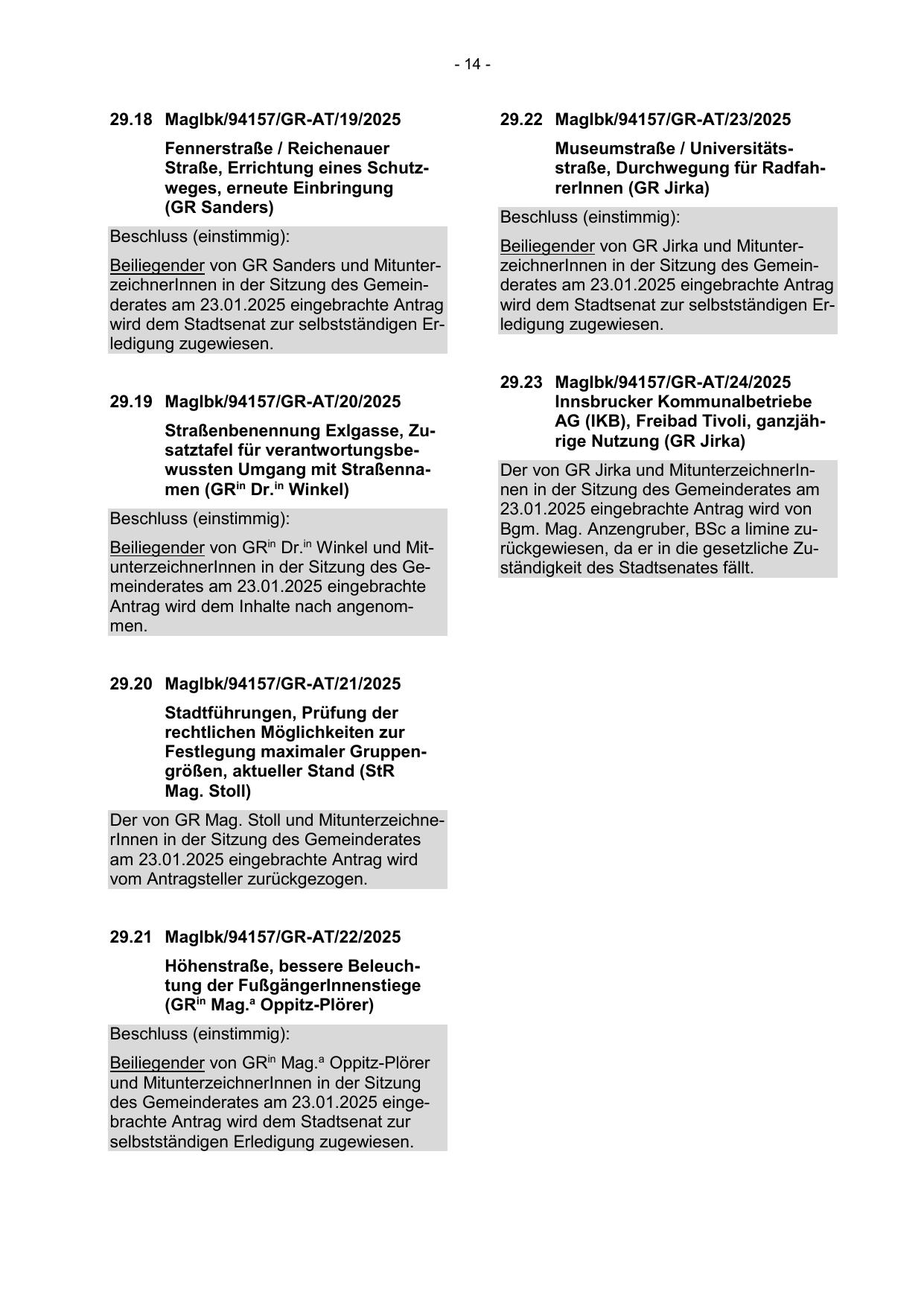 Beiliegender von GR Sanders und MitunterzeichnerInnen in der Sitzung des Gemeinderates am 23.01.2025 eingebrachte Antrag