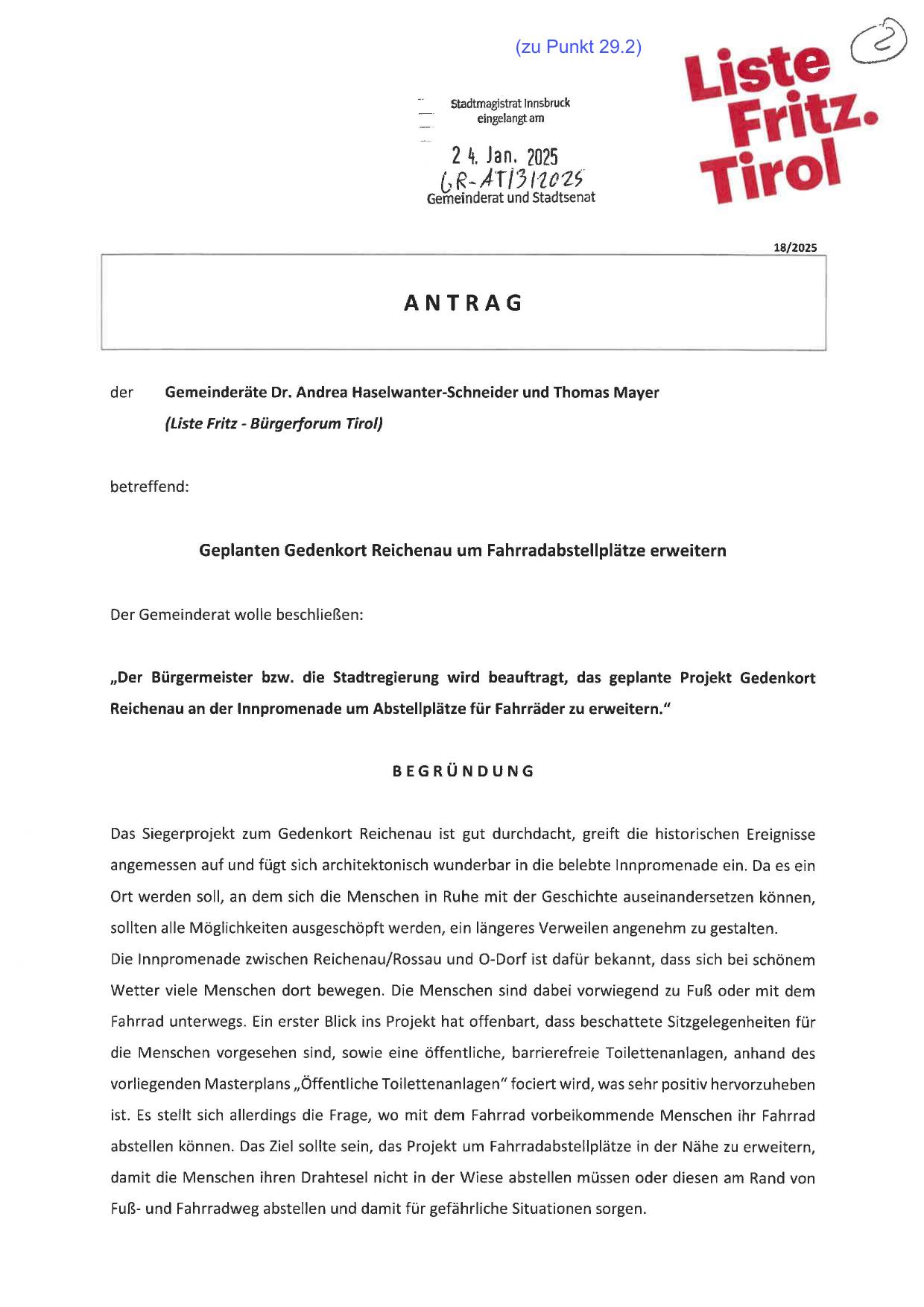 „Der Bürgermeister bzw. die Stadtregierung wird beauftragt, das geplante Projekt Gedenkort